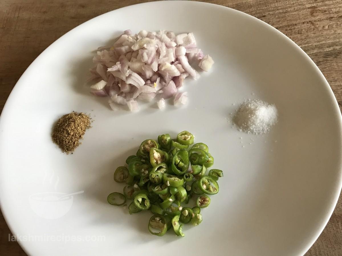 - Onion or pyaz - 1 medium size, finely chopped