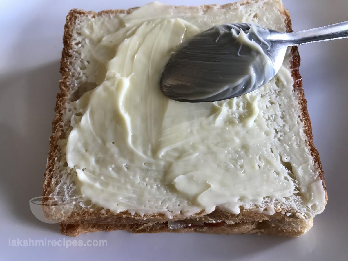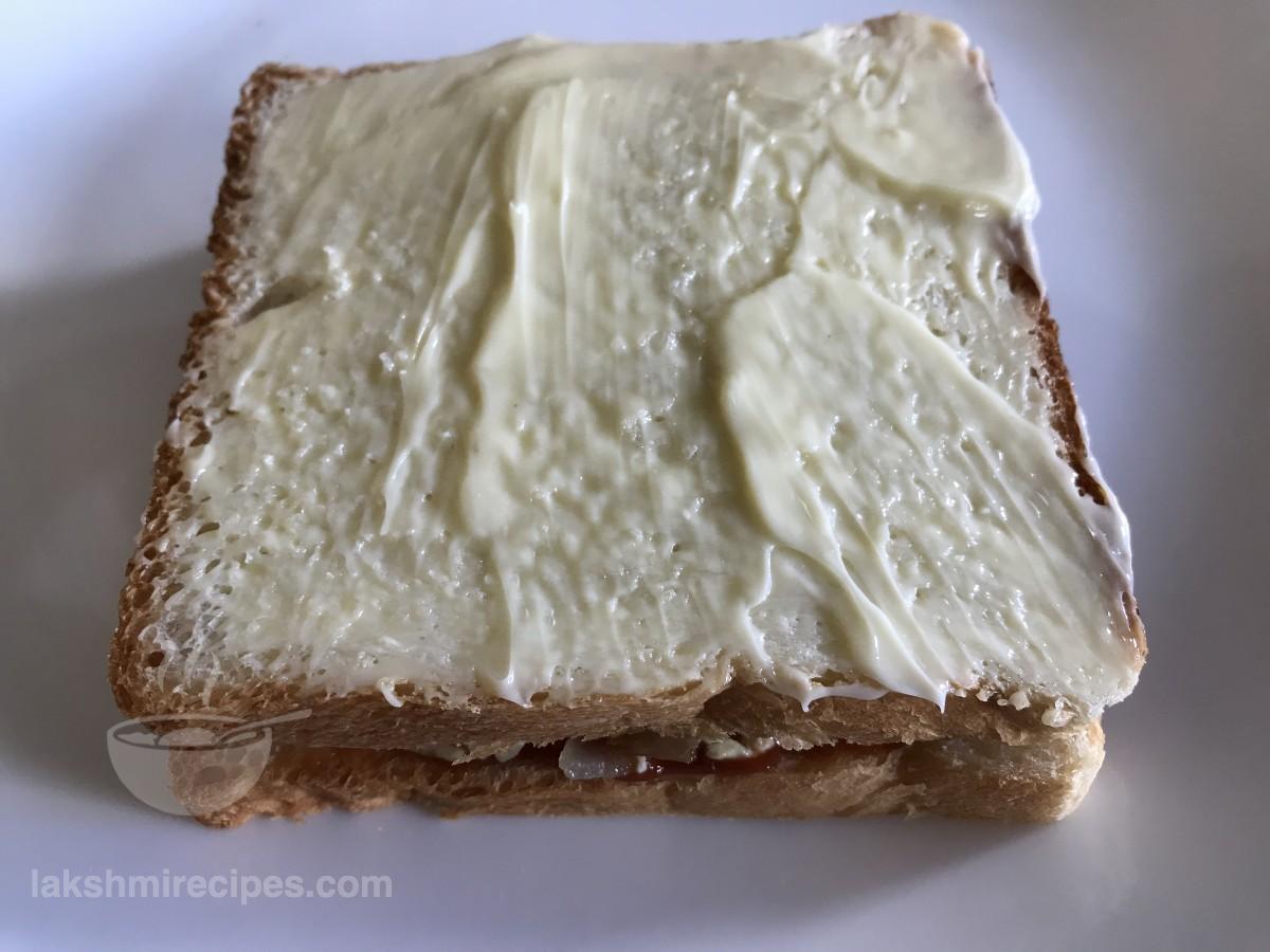 - Apply some butter on the top side of this bread.