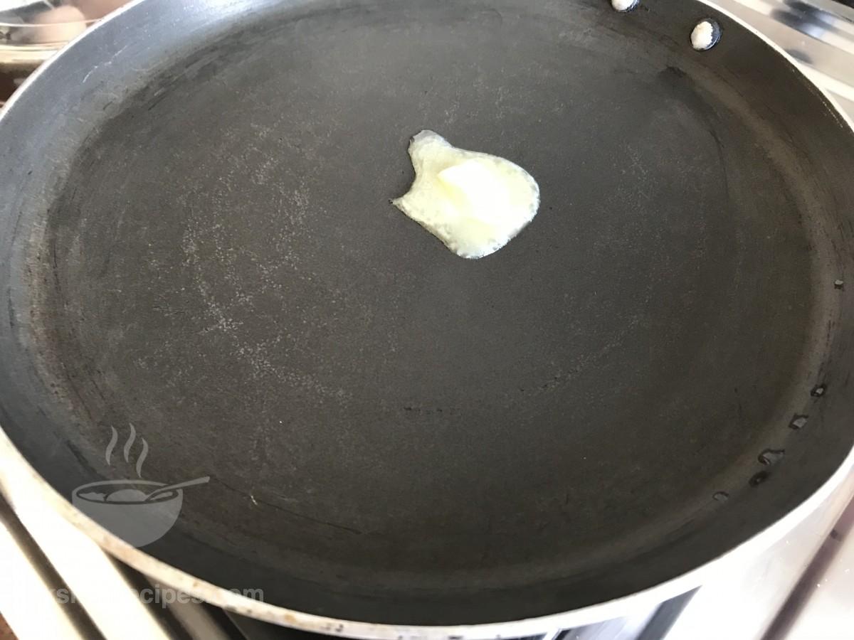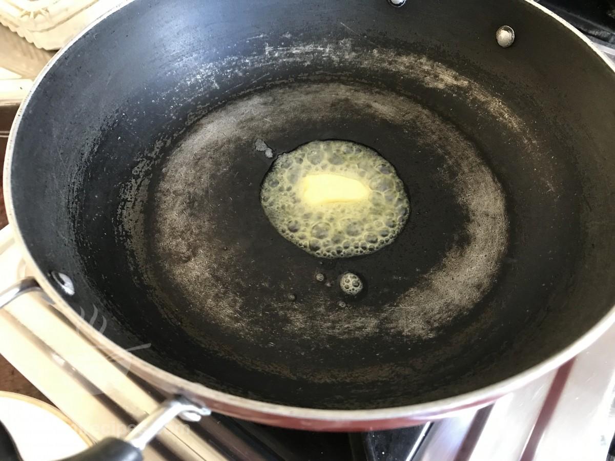 - एक कढ़ाई या नॉन-स्टिक पैन में 1 बड़ा चम्मच मक्खन डालकर गरम करें और इसे पिघलने दें।
