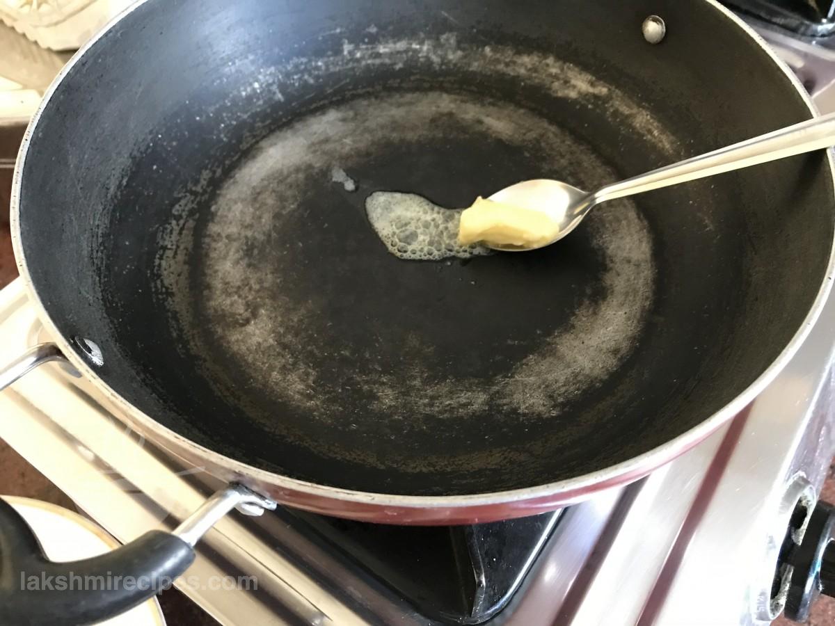 - Heat 1 table spoon butter in a kadhai or non-stick pan and allow it to melt.