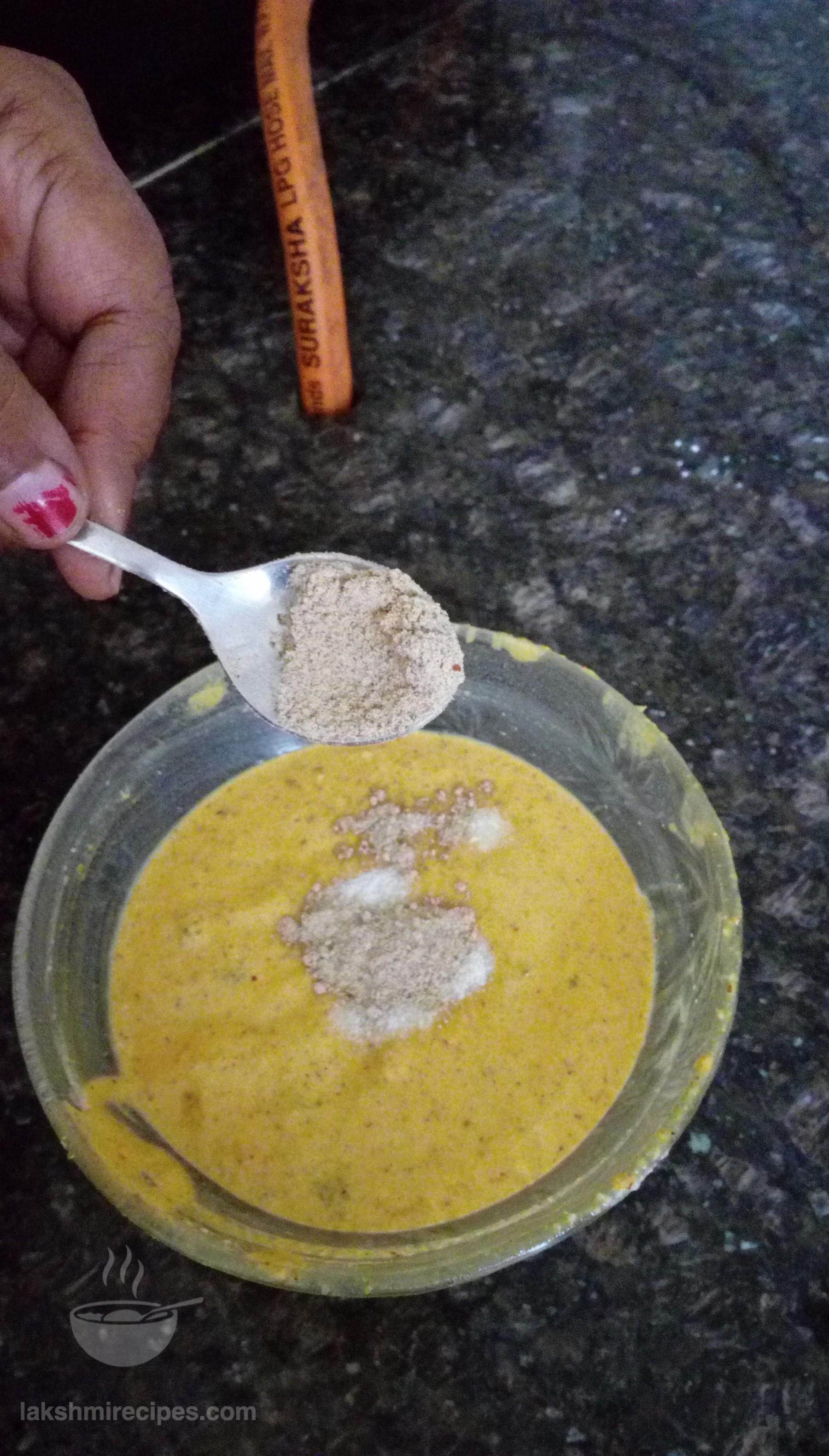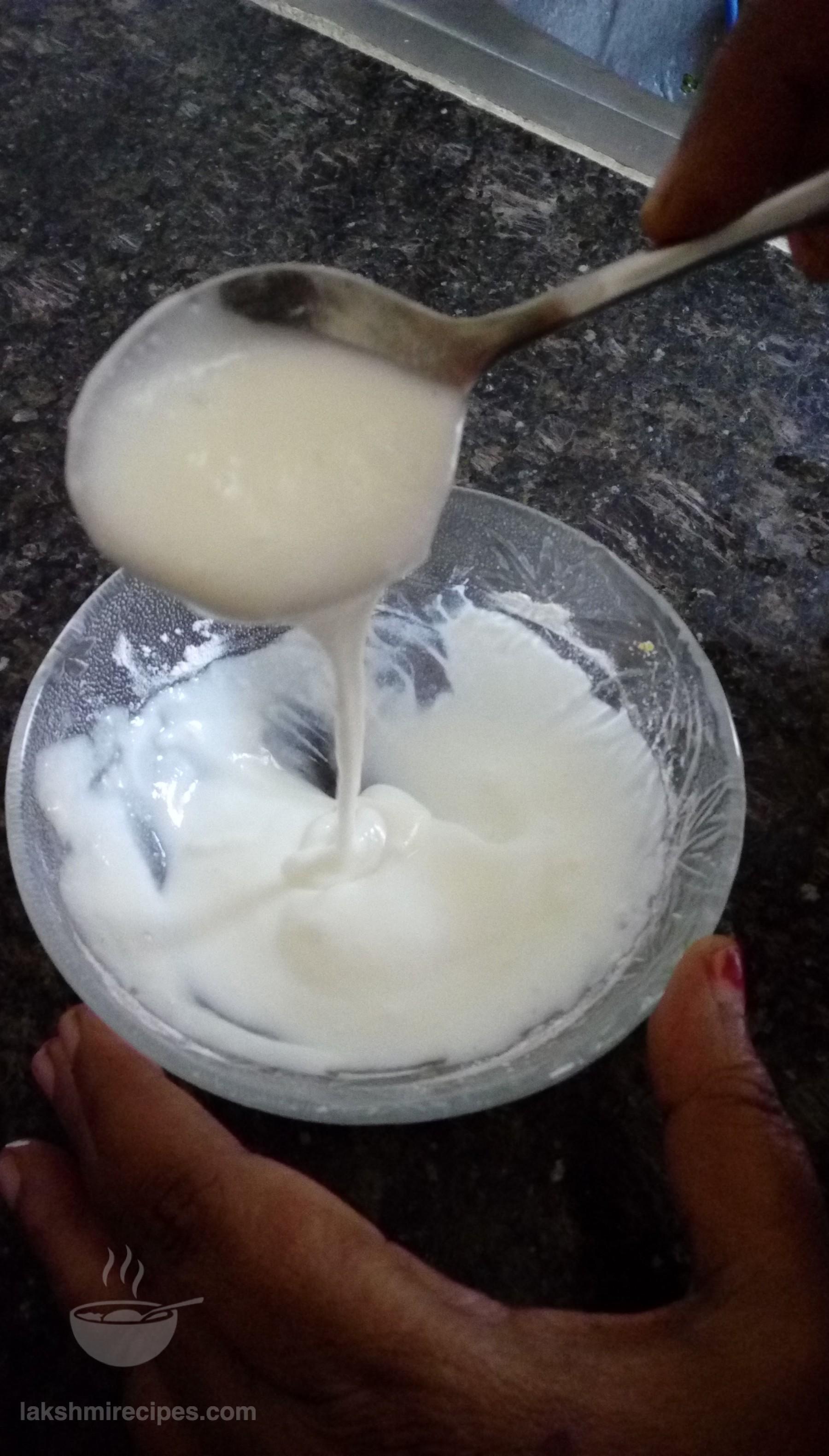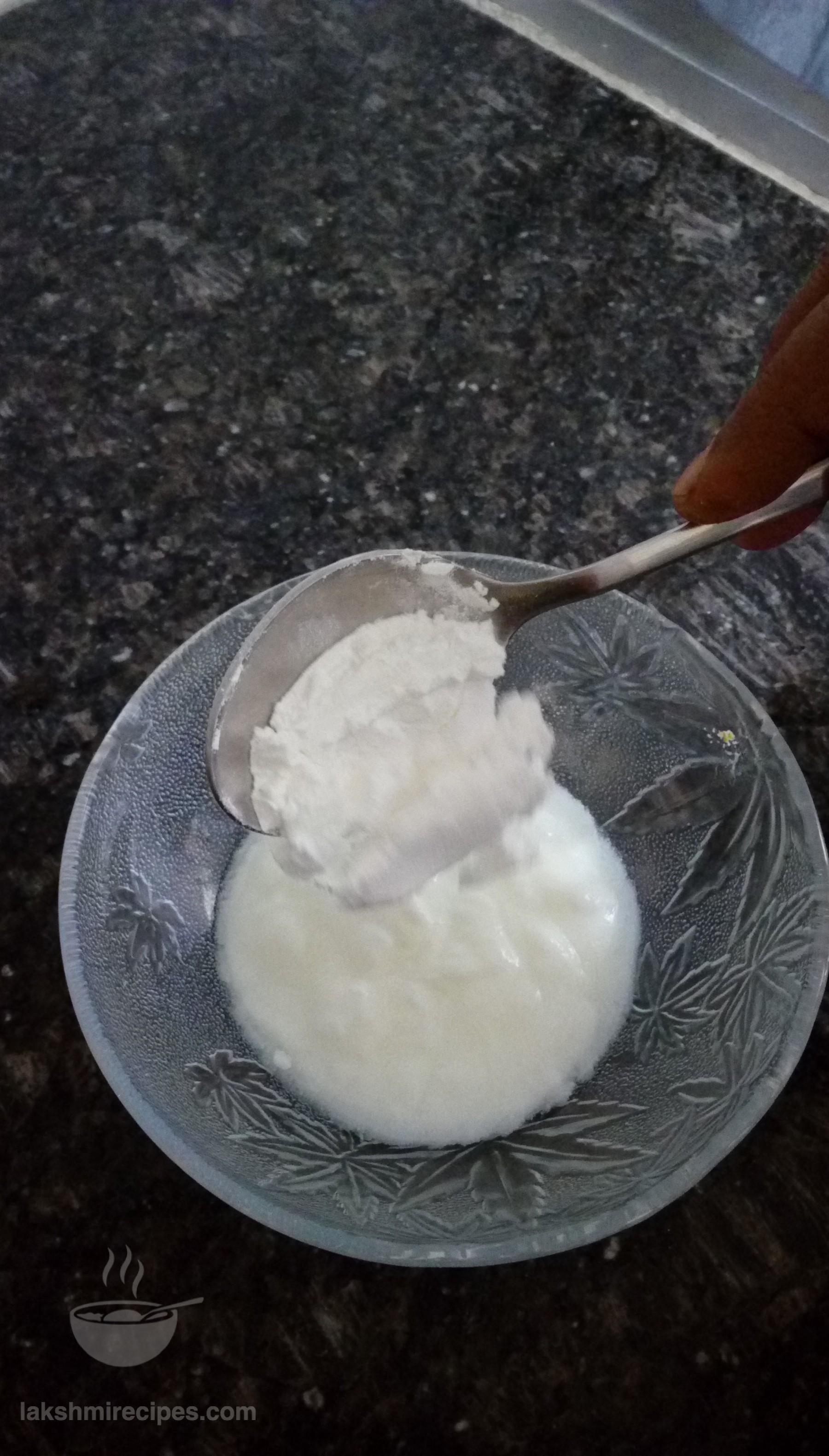 - Then take the curd in a mixing bowl and add corn flour to it. Mix the ingredients together to form a uniform mixture.