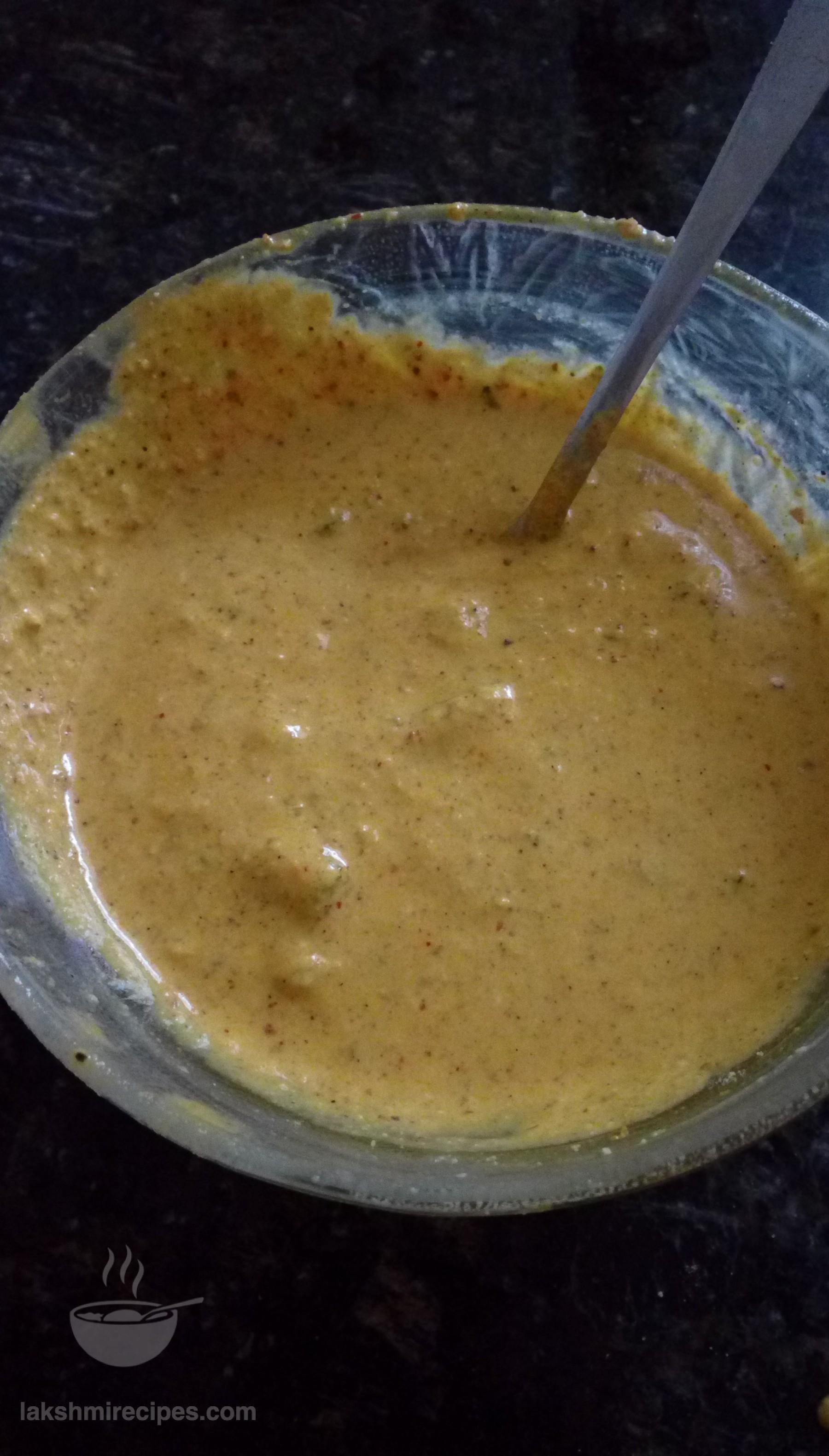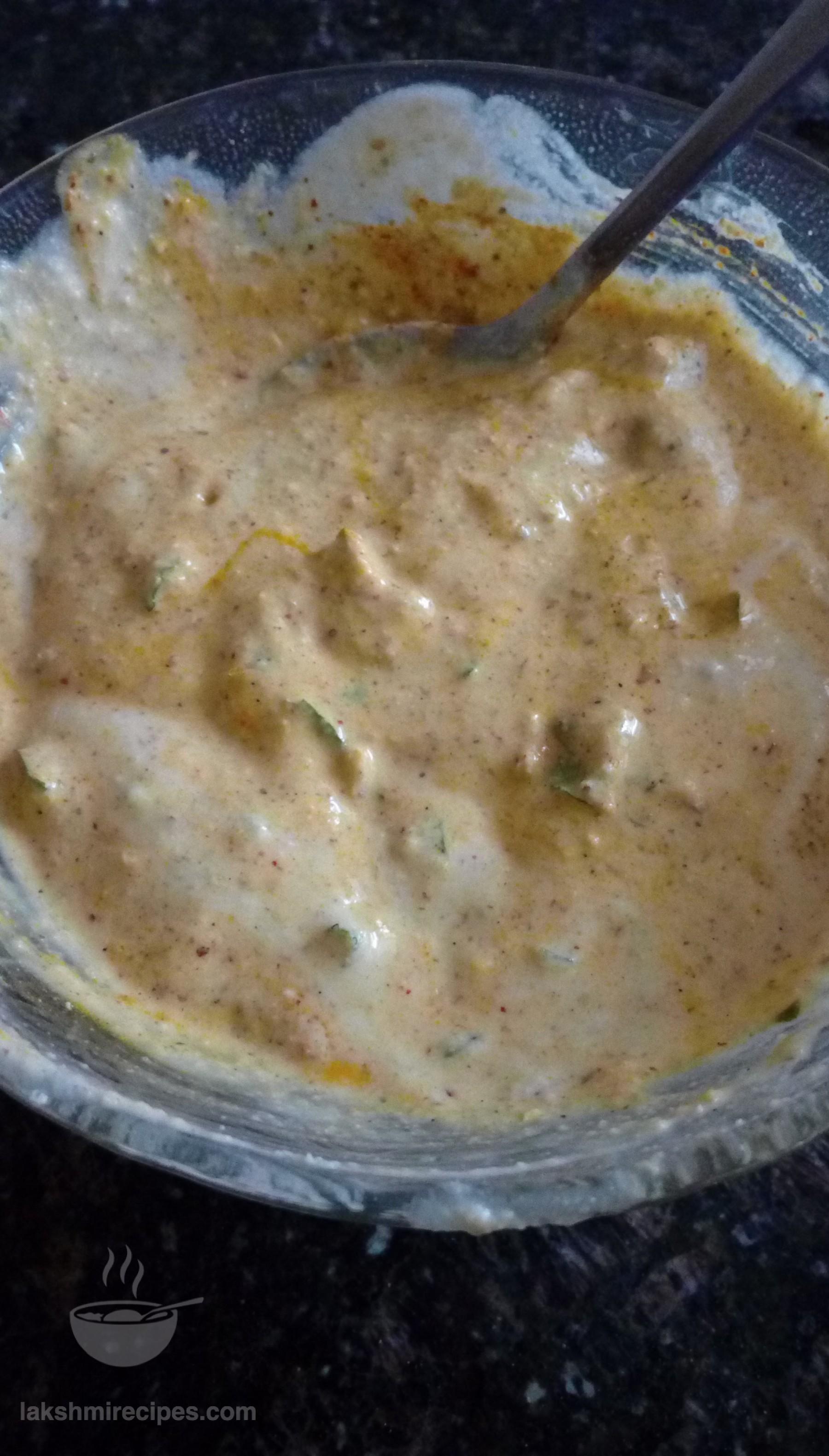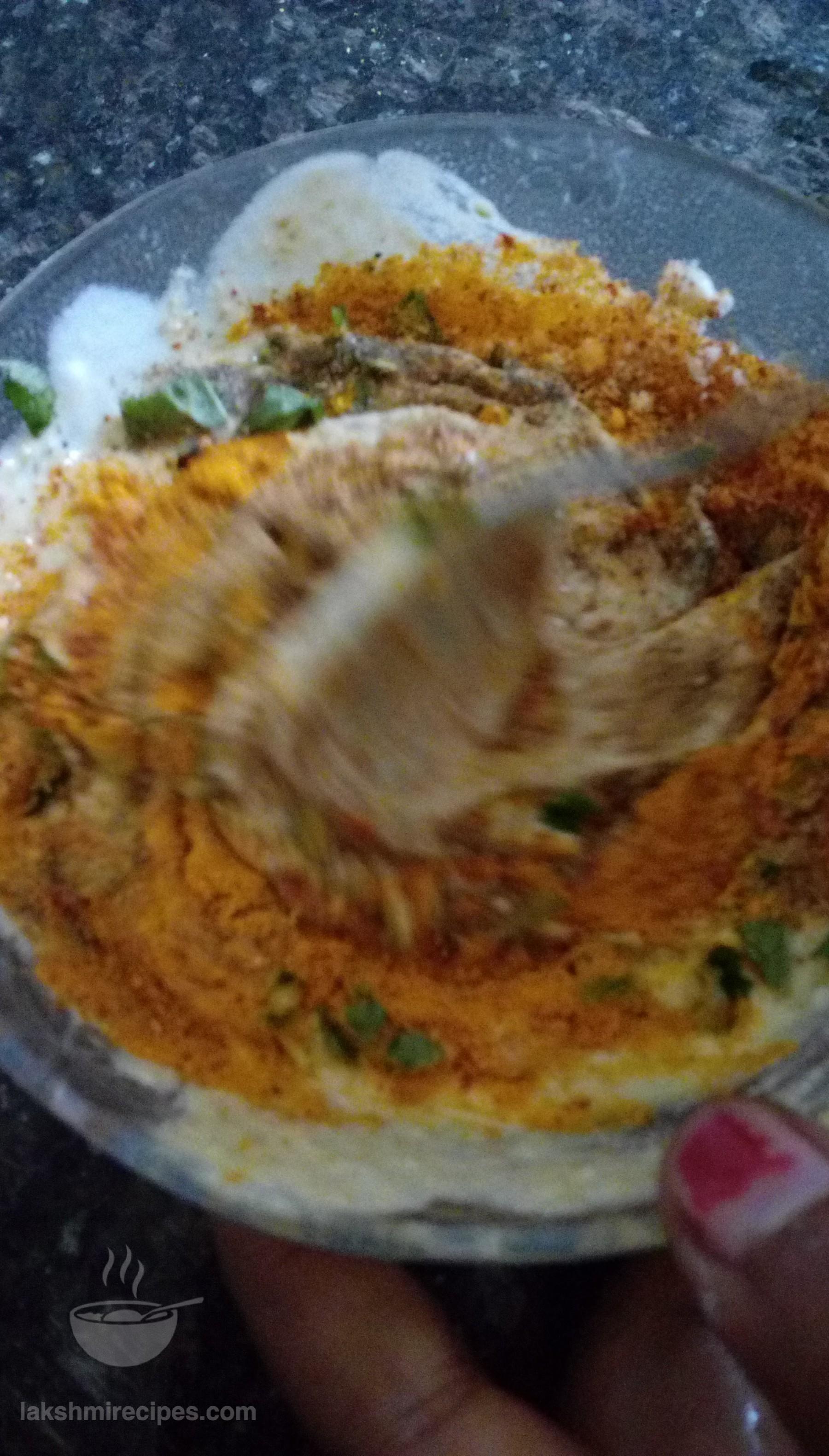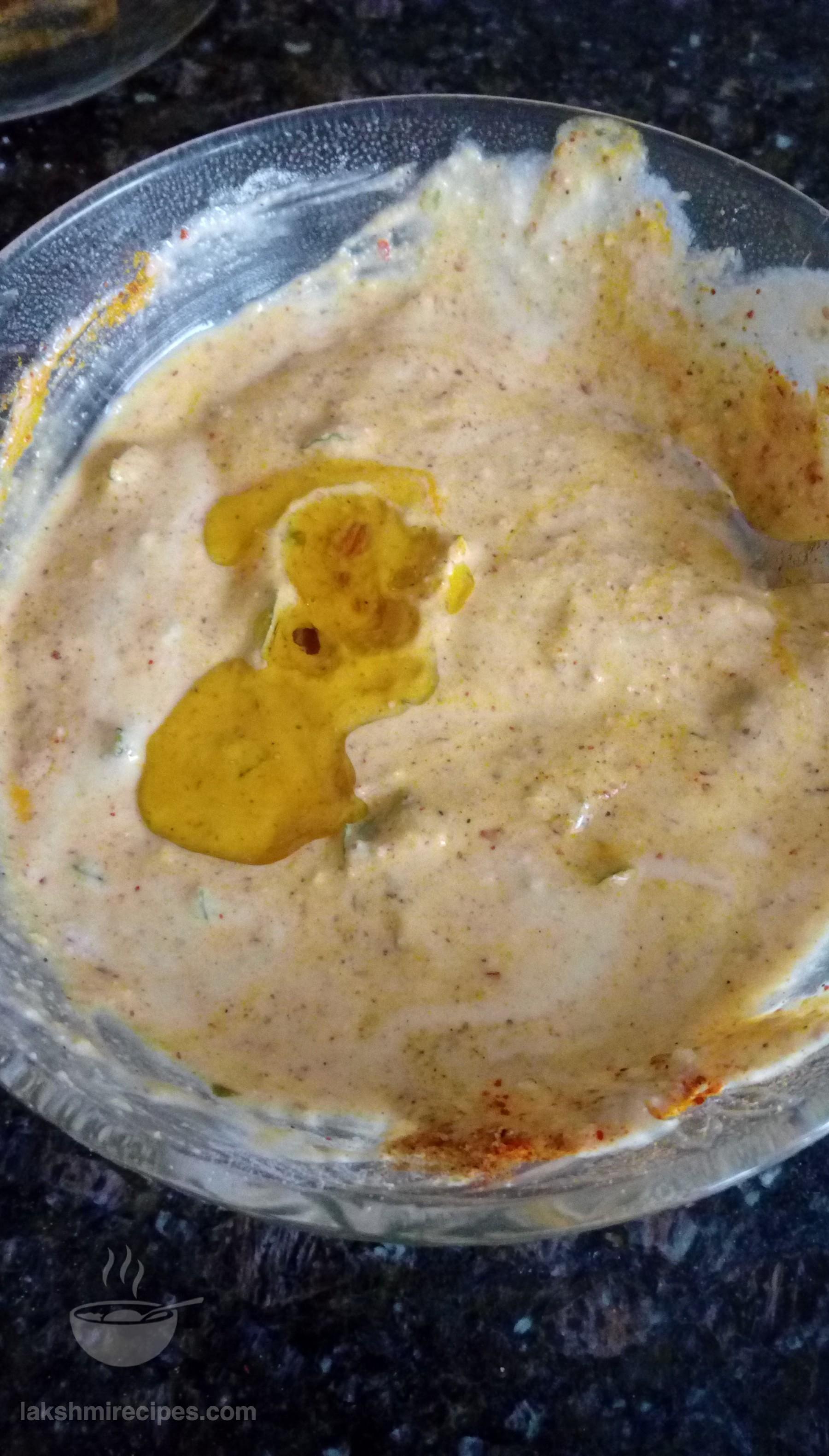 - फिर स्वाद के अनुसार नमक, आमचूर पाउडर और स्टेप 3 में तैयार किये गये पेस्ट को भी दही के मिश्रण में डालें। फिर मिलालें और 5 मिनट के लिए दही के मैरिनेशन को स्थिर छोड़दें।