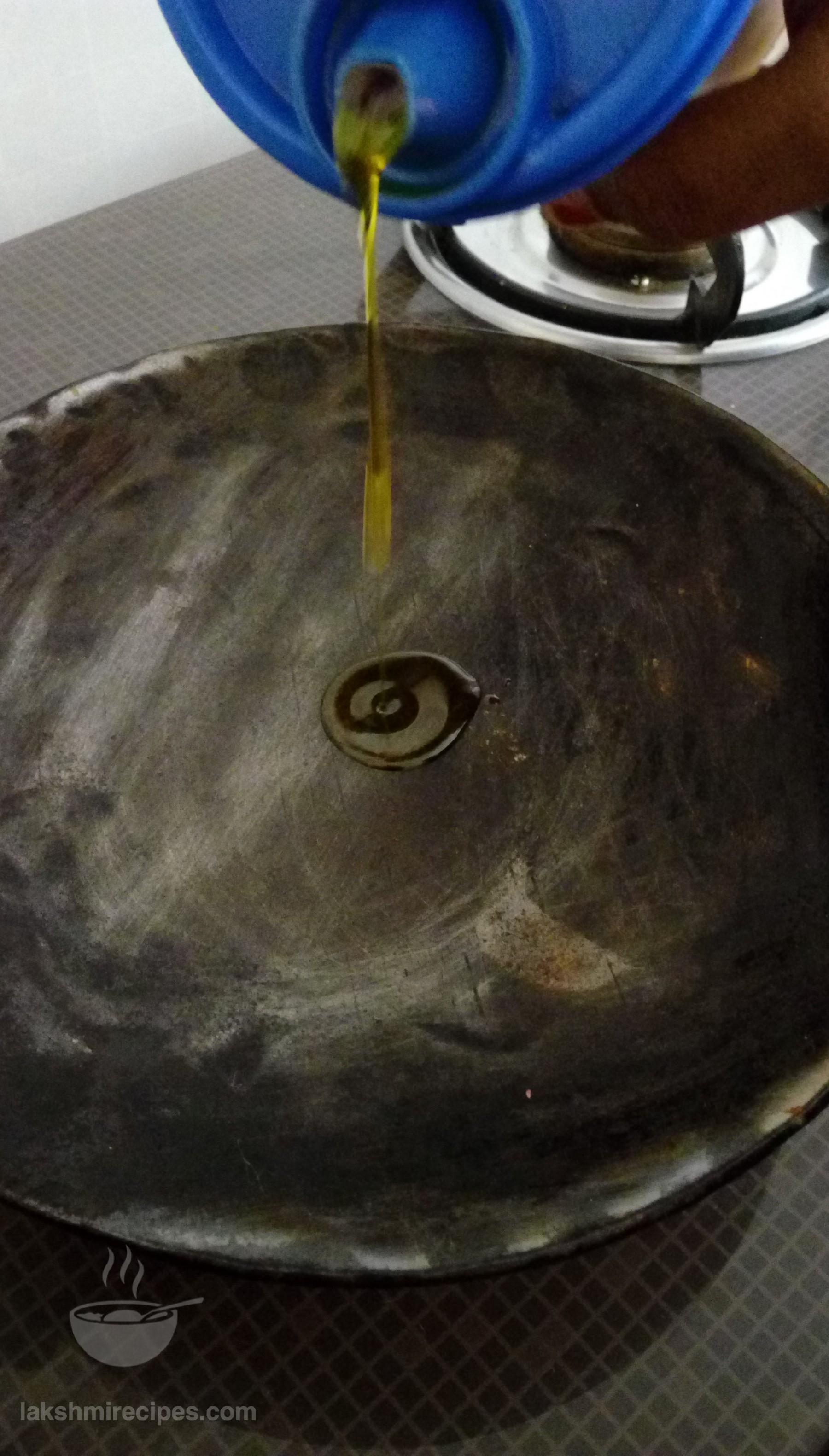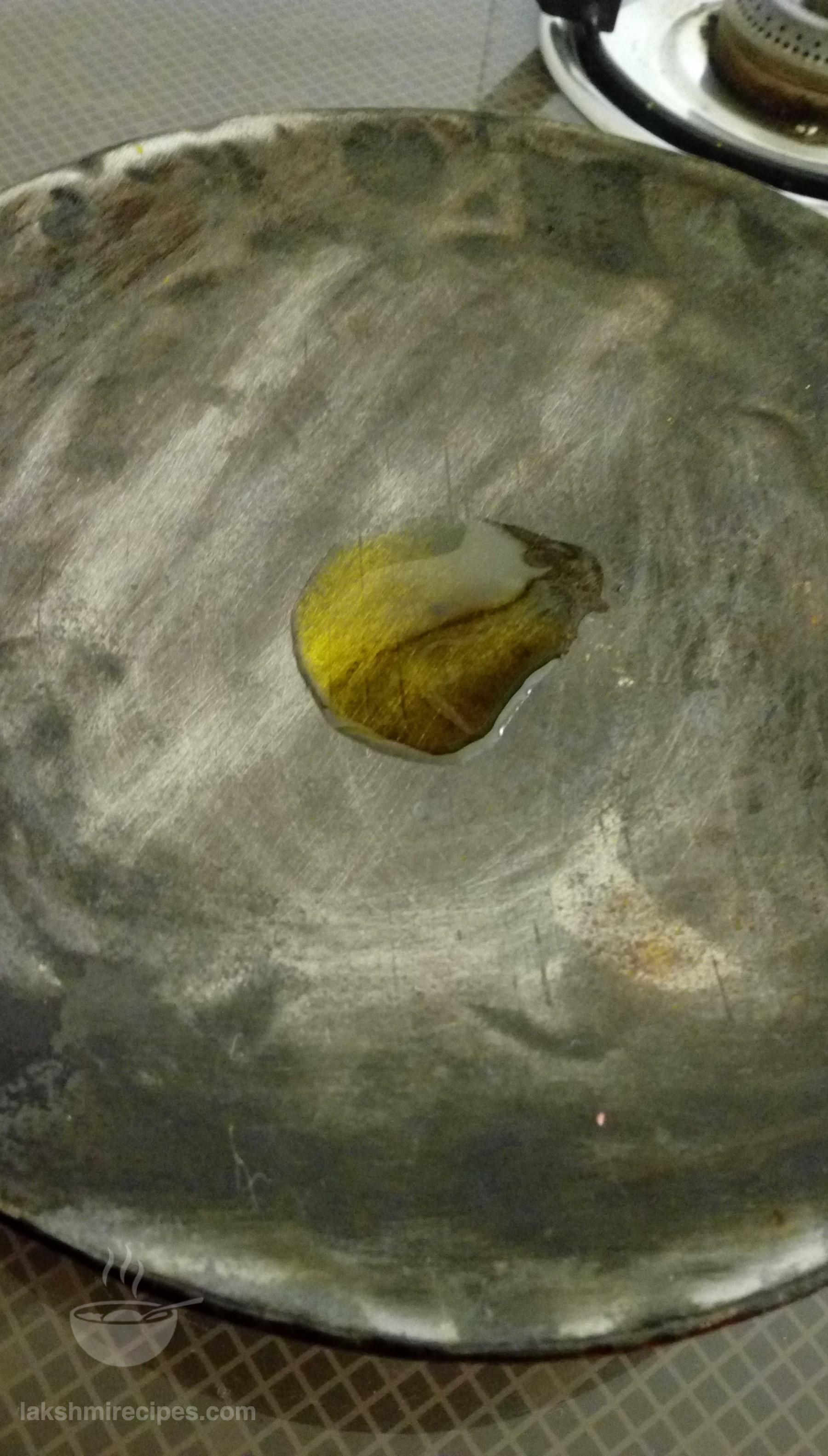 - दो अलग-अलग गैस स्टोवों पर दो नाॅन-सटिक पैन (ग्रिलिंग पैन या तवा का उपयोग भी कर सकते हैं) रखकर 1 छोटी चम्मच से सरसों का तेल डालकर पूरे पैन पर फैलालें।