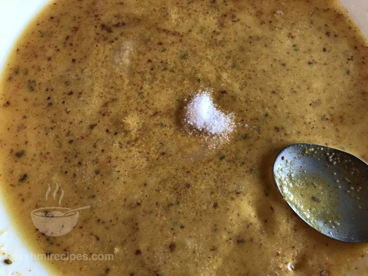 - Now add salt as per taste and mix. Leave the batter to rest for 2-5 minutes.