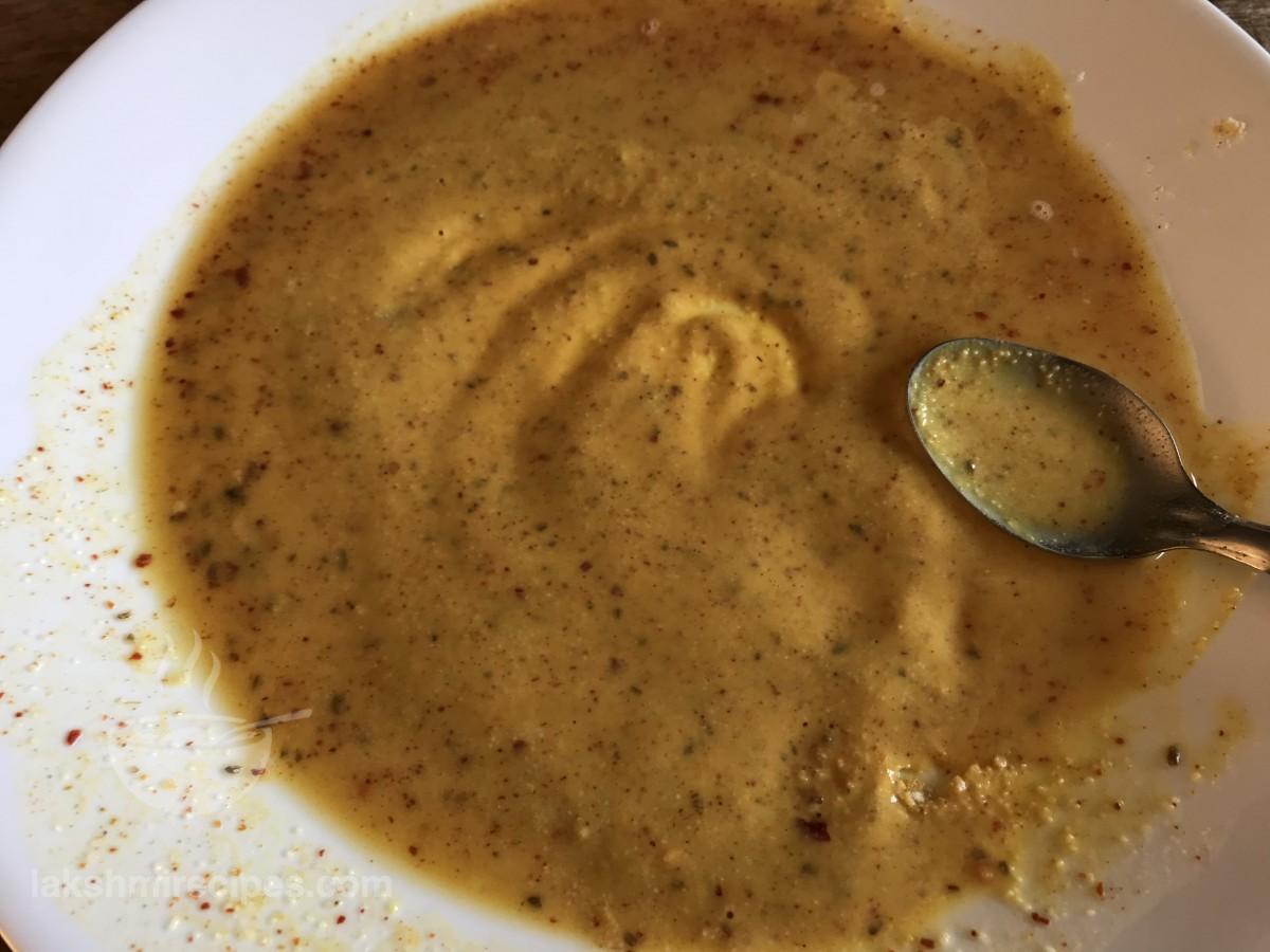 - Heat a non-stick pan and grease it with 1 tea spoon mustard oil. Then lower the flame.