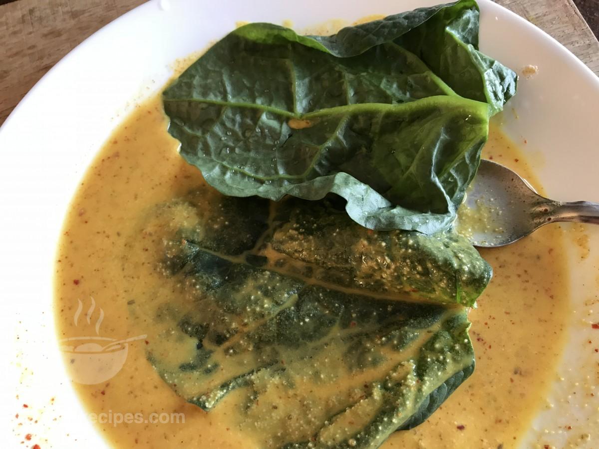 - फिर एक पोई का पत्ता लें और इसे तैयार घोल में डुबो दें। इसे दोनों तरफ घोल के साथ अच्छी तरह से कोट करें। एक और पोई का पत्ता लें और इसे उसी तरह घोल के साथ कोट करें।