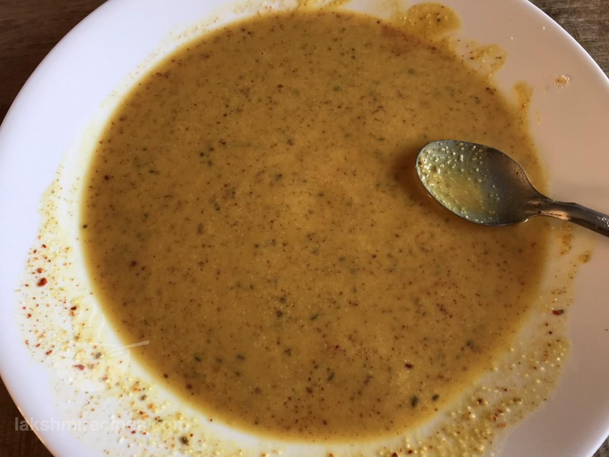- Now slowly add water to the ingredients and mix to form a medium thick batter. Make sure that no lumps are formed. Kindly note that the batter should neither be very thick nor very thin in consistency.
