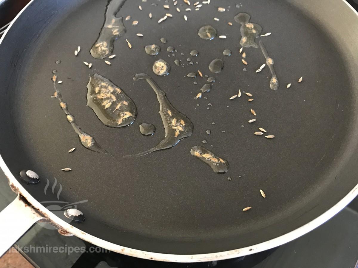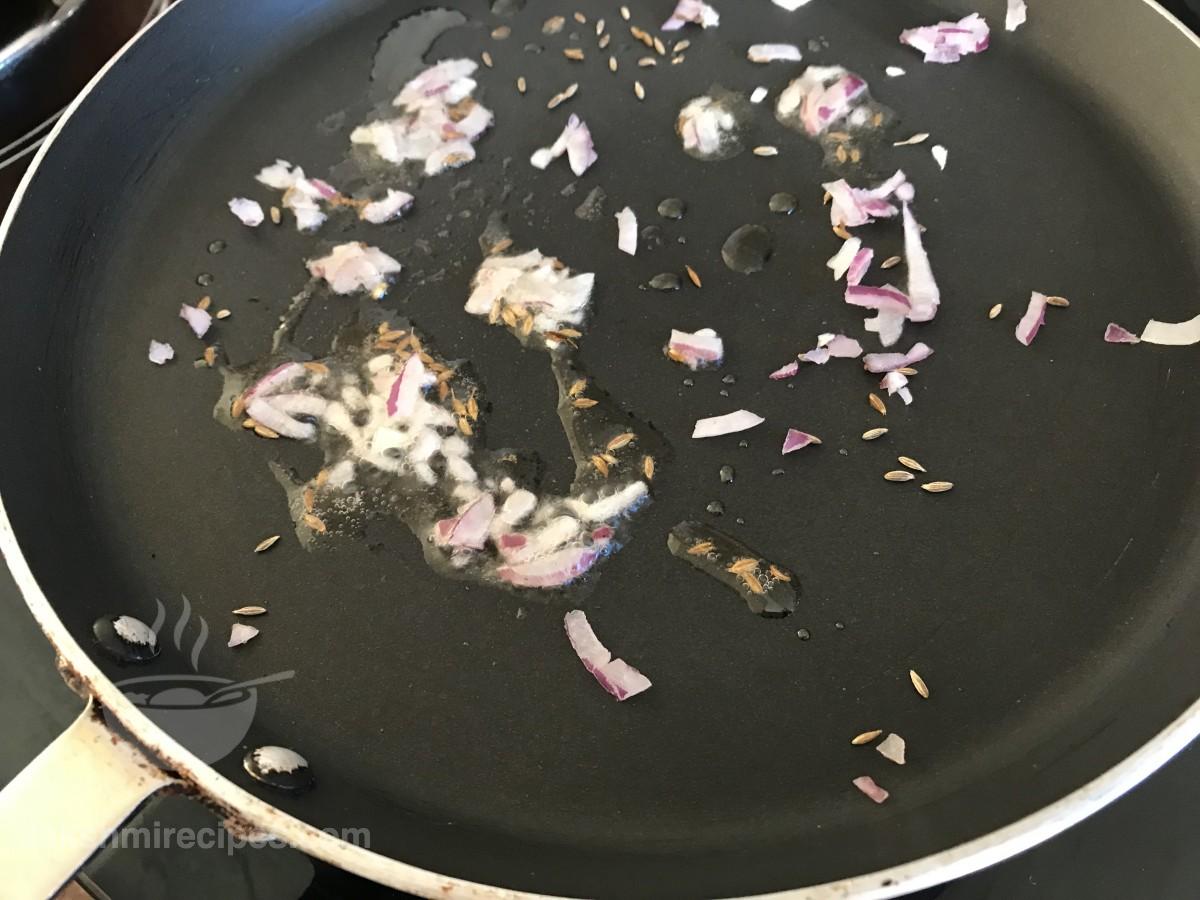 - Sprinkle some chopped onion and cumin seeds over the tawa. Allow the cumin seeds to crackle.