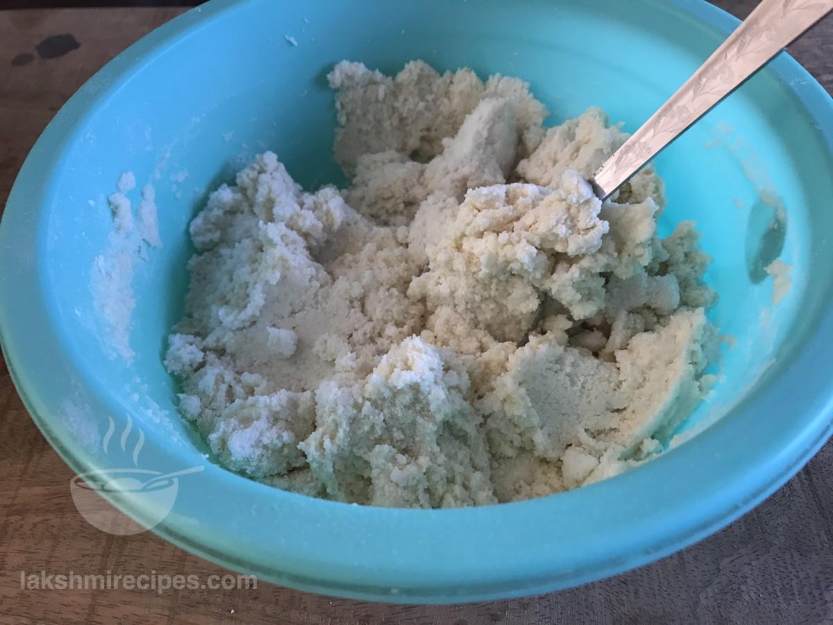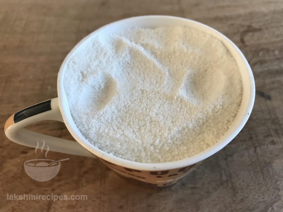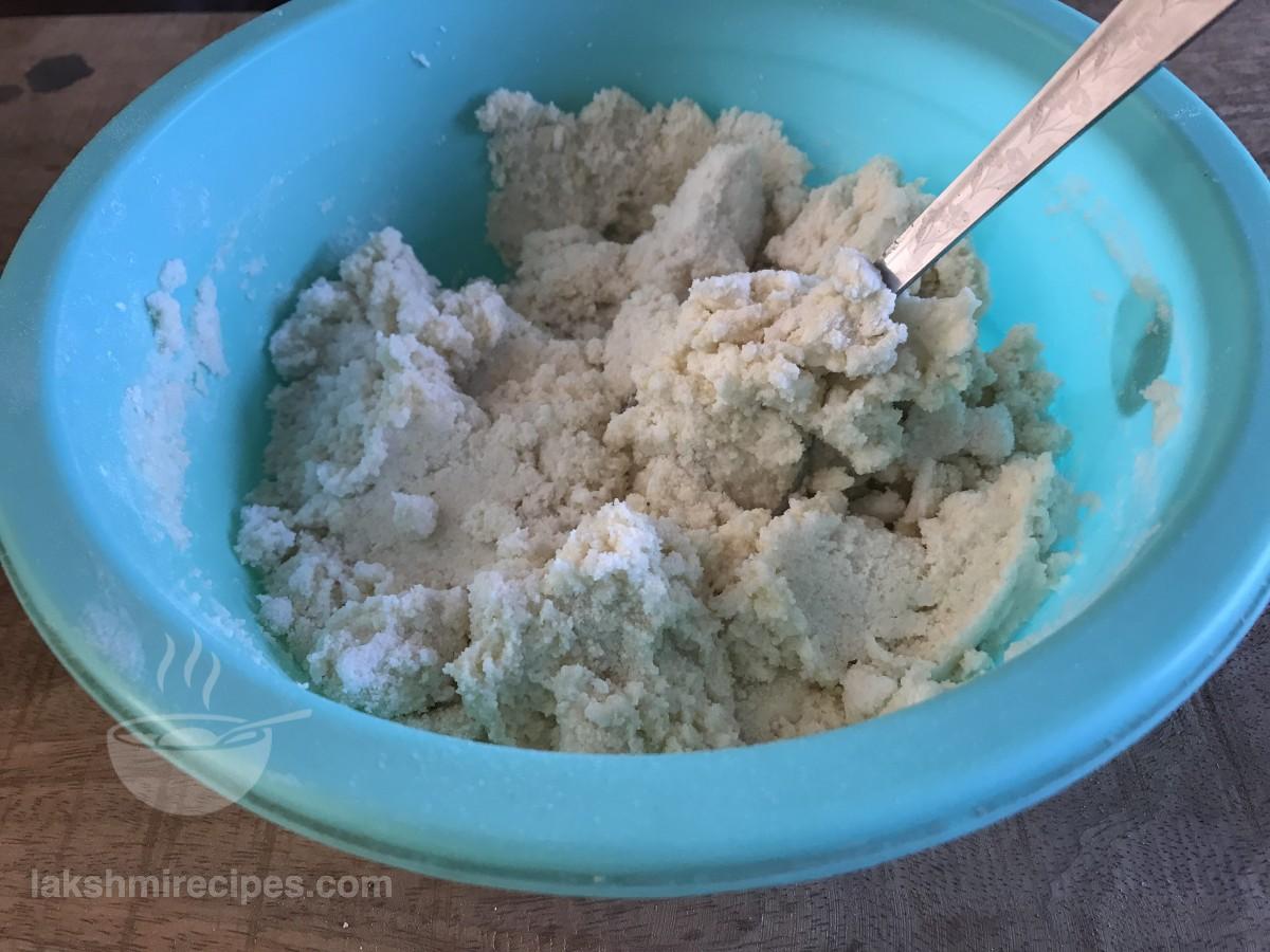 - Take semolina, rice flour and all purpose flour in a deep bowl or mixing vessel. Mix the dry ingredients together.
