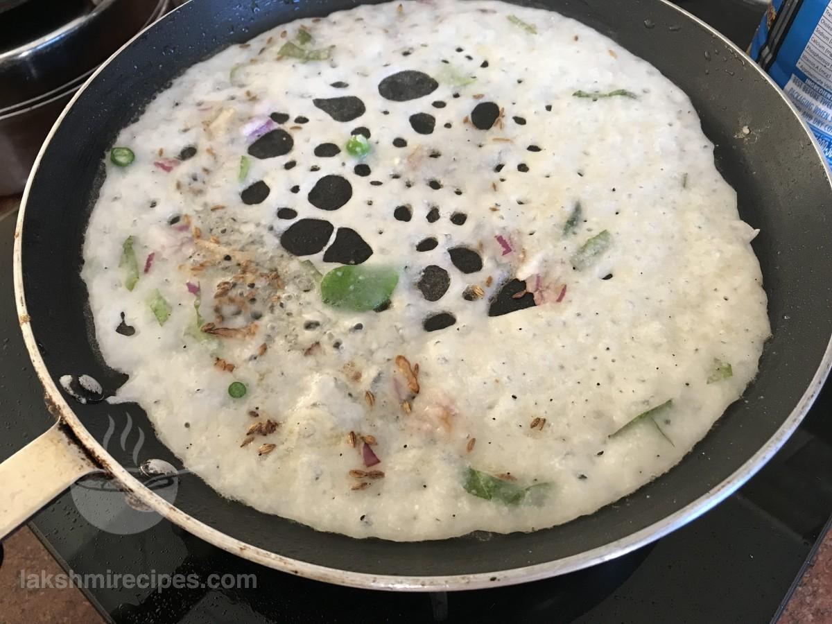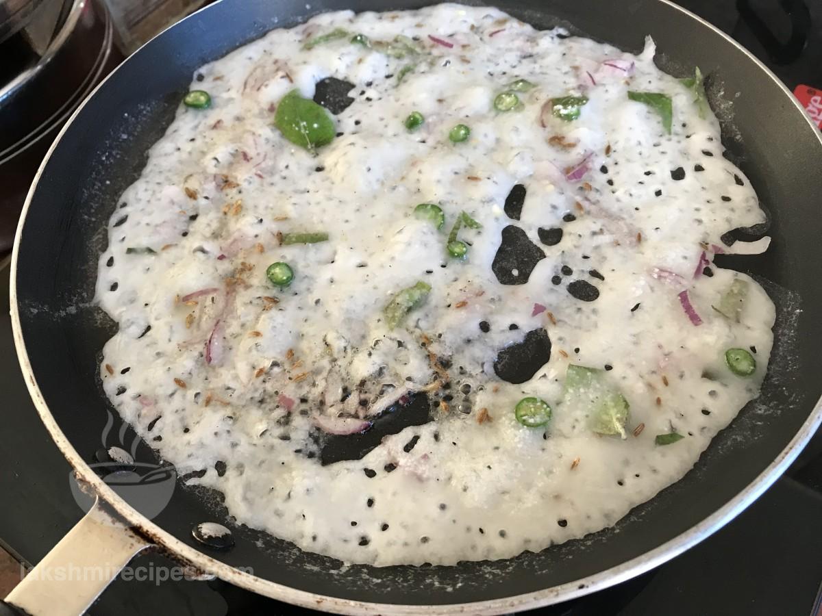 - When the batter starts appearing cooked and begins to change its color, then pour 1 tea spoon refined oil over it.