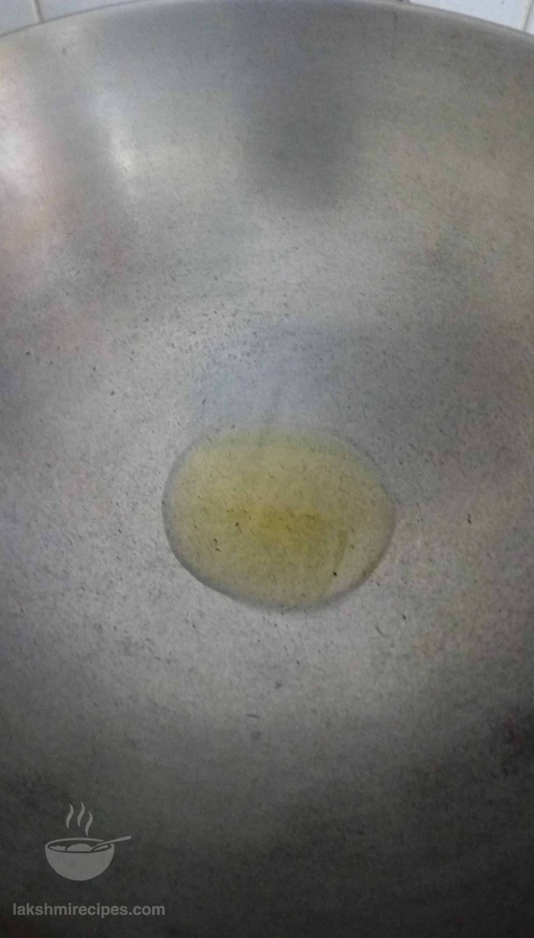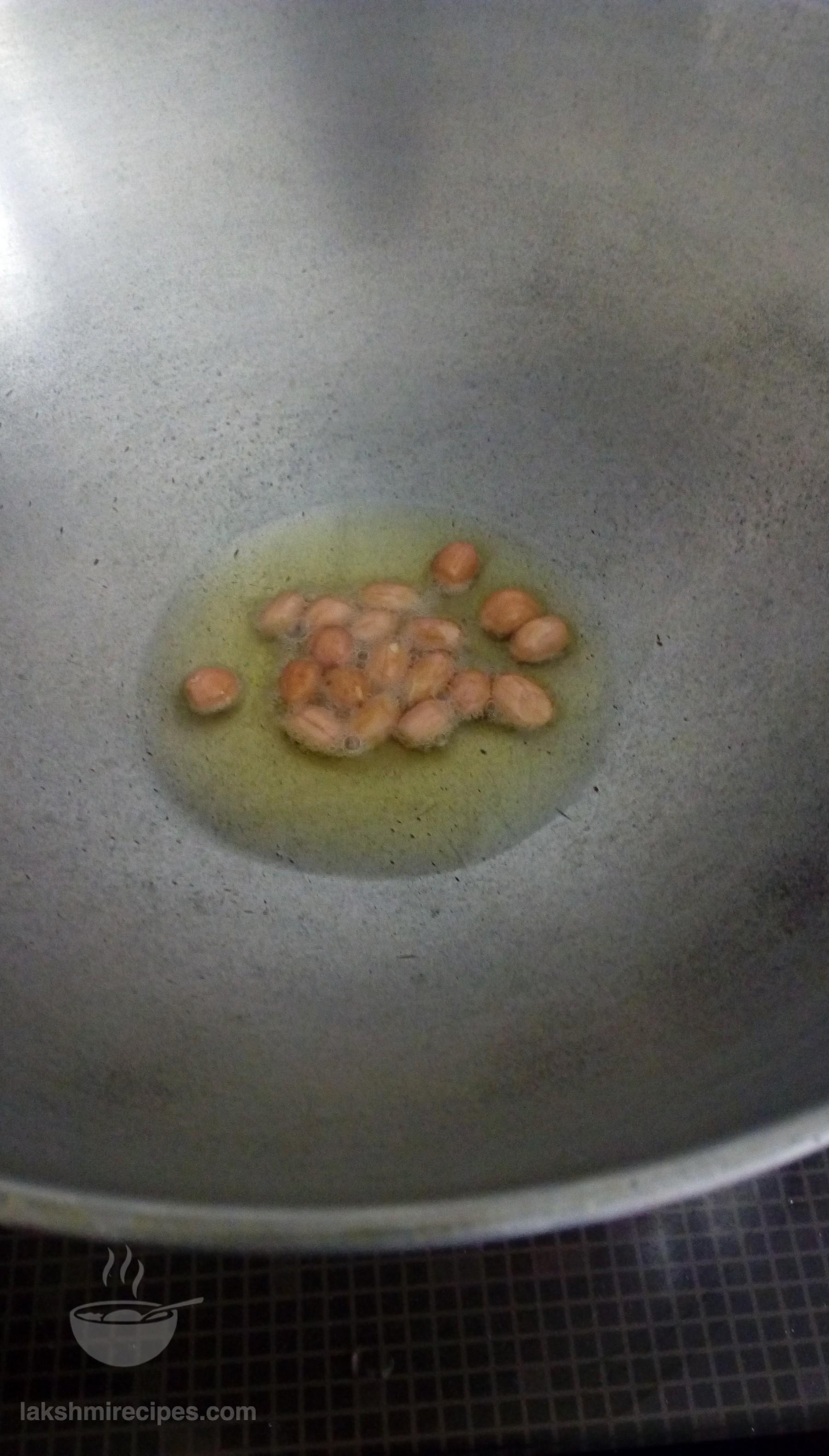 - Heat 1 table spoon in a kadhai and then roast the peanuts (moongfali dana) in it till crispy red. Then transfer them to a plate to be used later.