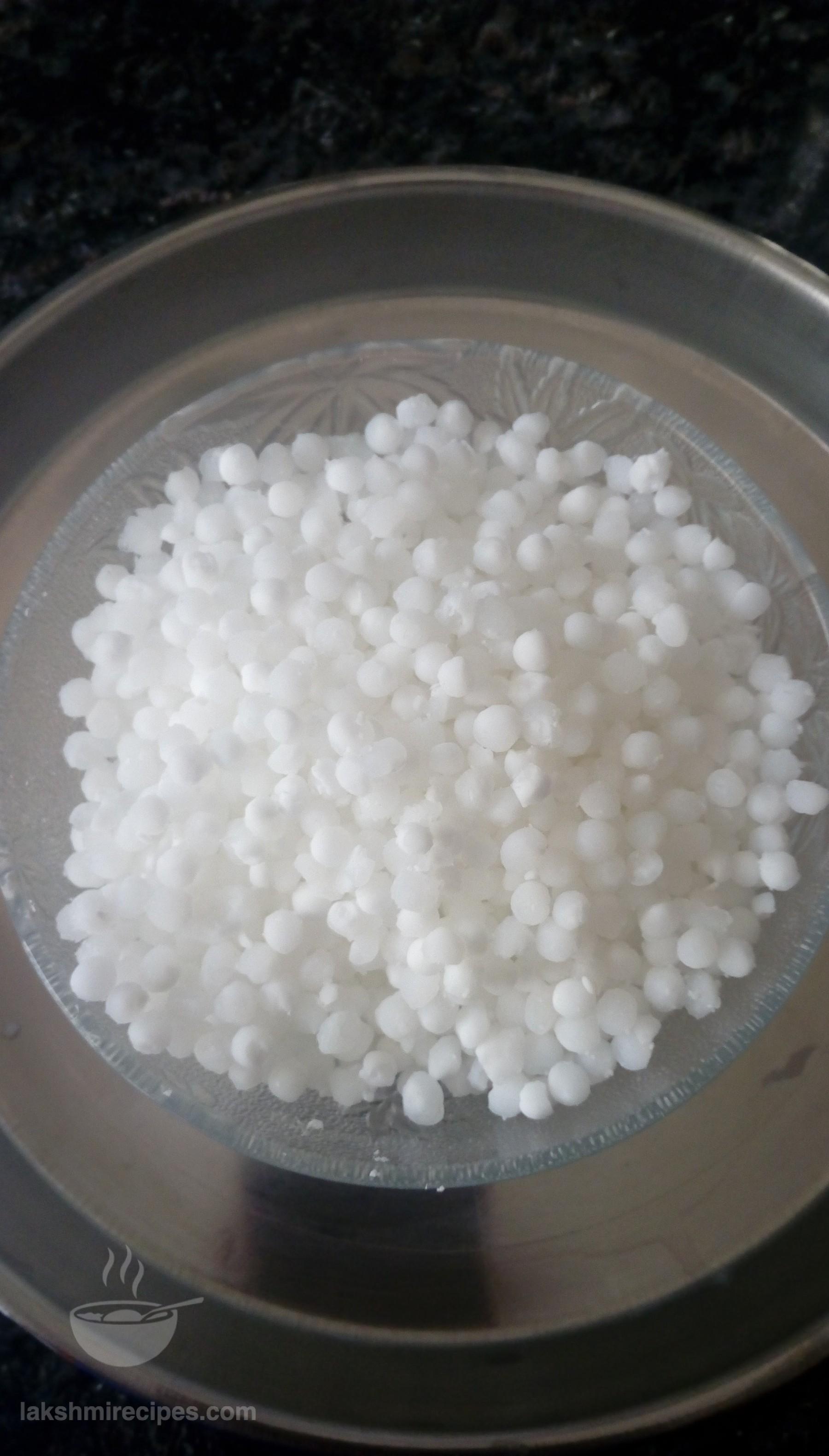 - Soak the sago (sabudana) for 4-5 hours in plain water. (use the sago (sabudana) of big grain size).