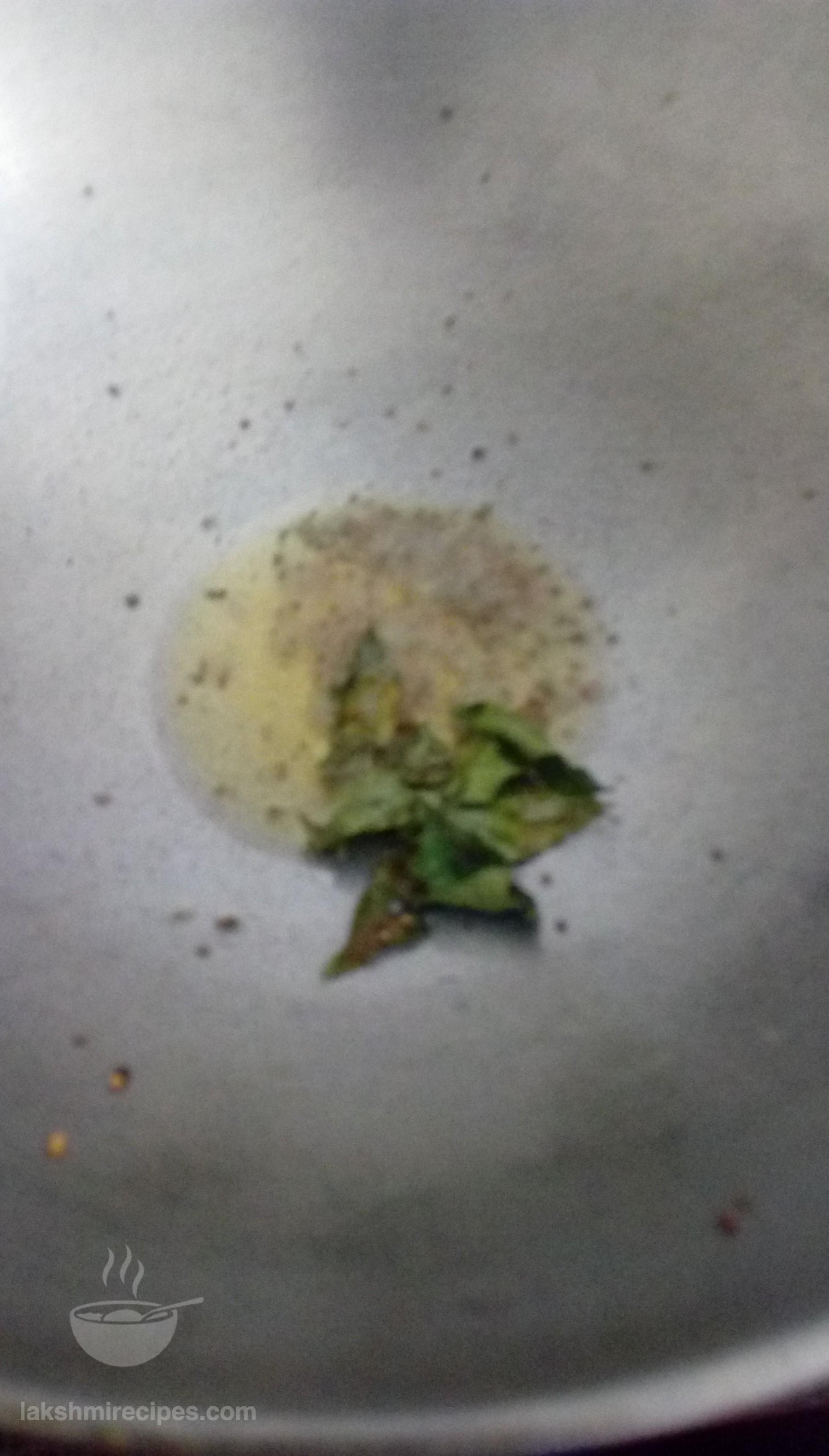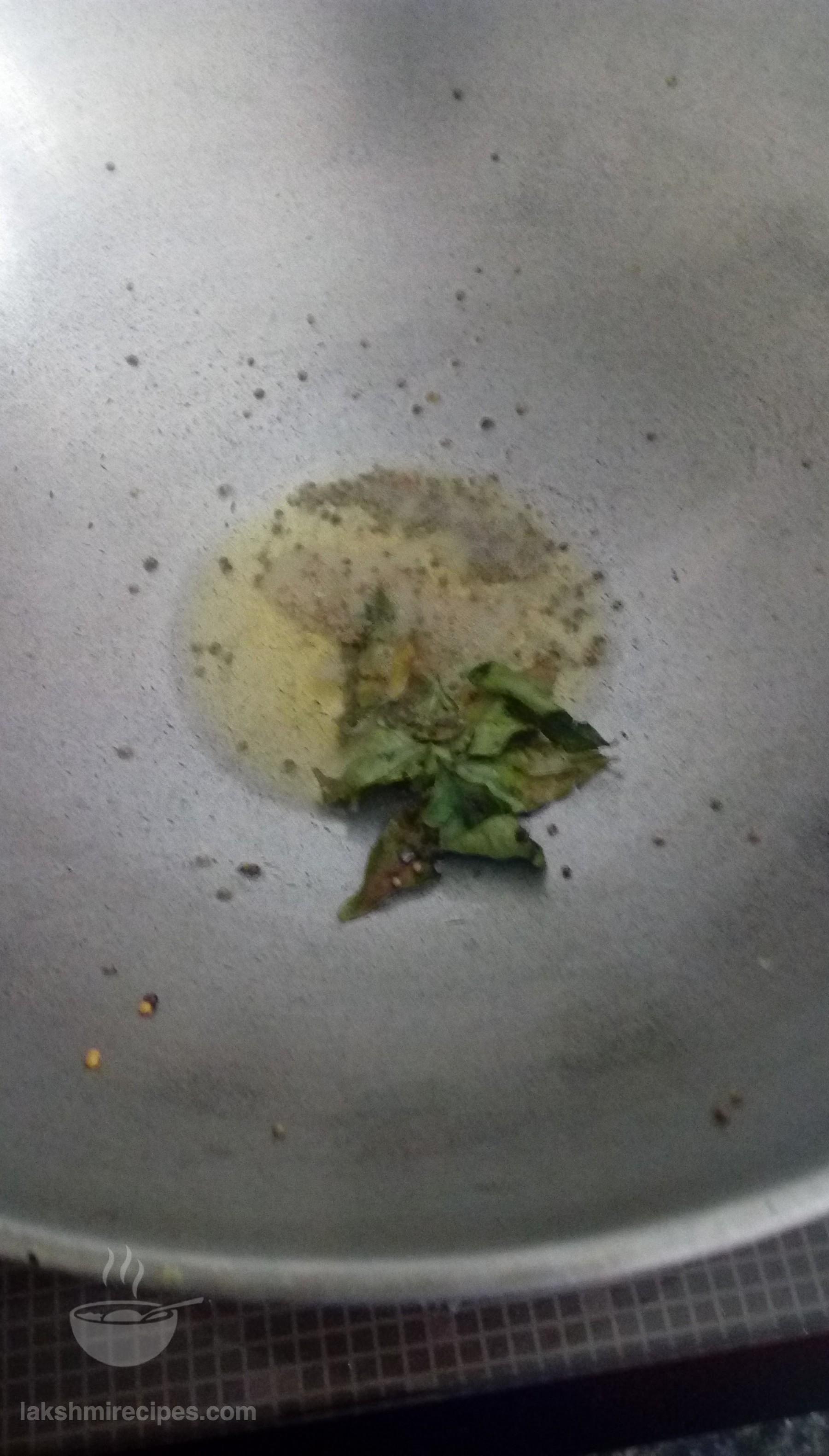 - Now add the black mustard seeds (rai) and curry leaves (kari patta) and allow them to crackle.
