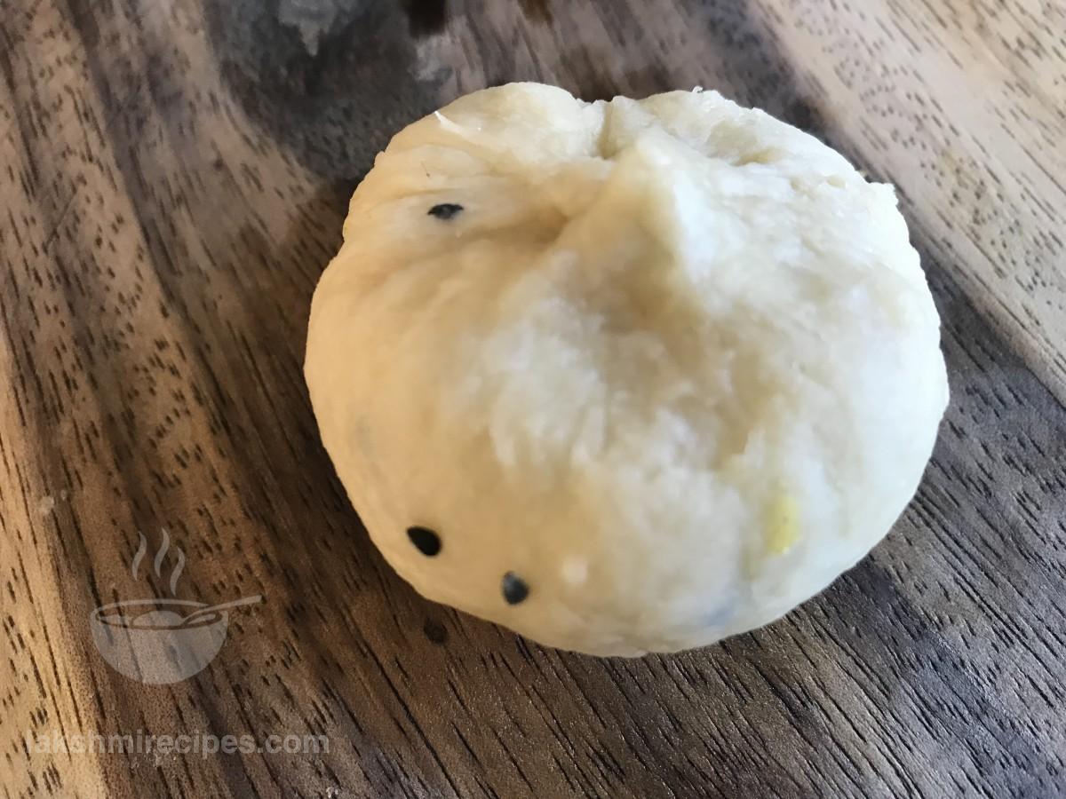 - फिर एक लोई लें और अपने अंगूठे और उंगलियों की मदद से उसे कटोरी जैसा आकार दें (जैसा कि नीचे की छवि में दिखाया गया है)।
