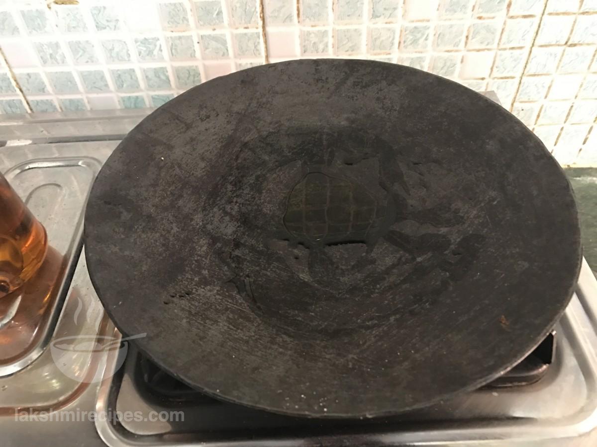 - एक नाॅन-सटिक पैन को गरम करें और इसे 1 बड़ा चम्मच तेल उसपर डालकर के फैला दें।