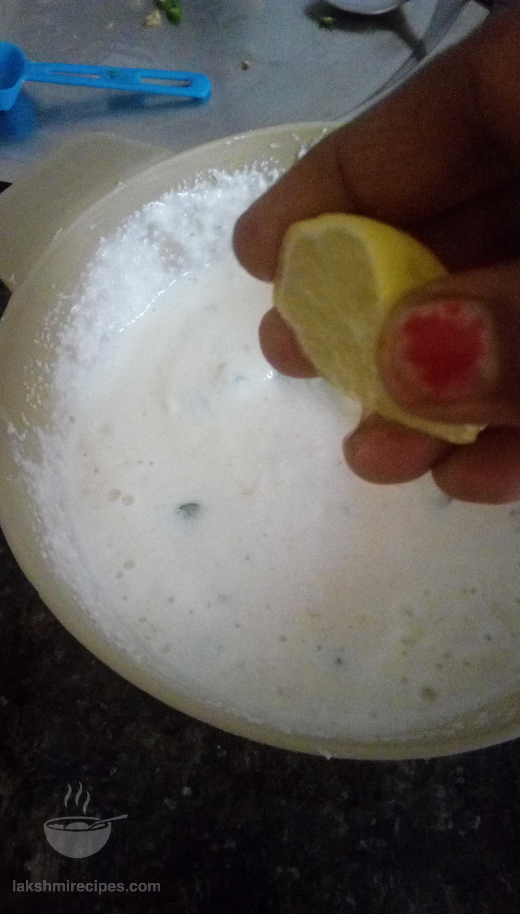 - Then squeeze the juice of 1/3 of lemon of medium size. Lightly mix the juice in the batter with your hands. The dhokla batter is now ready to be steamed.