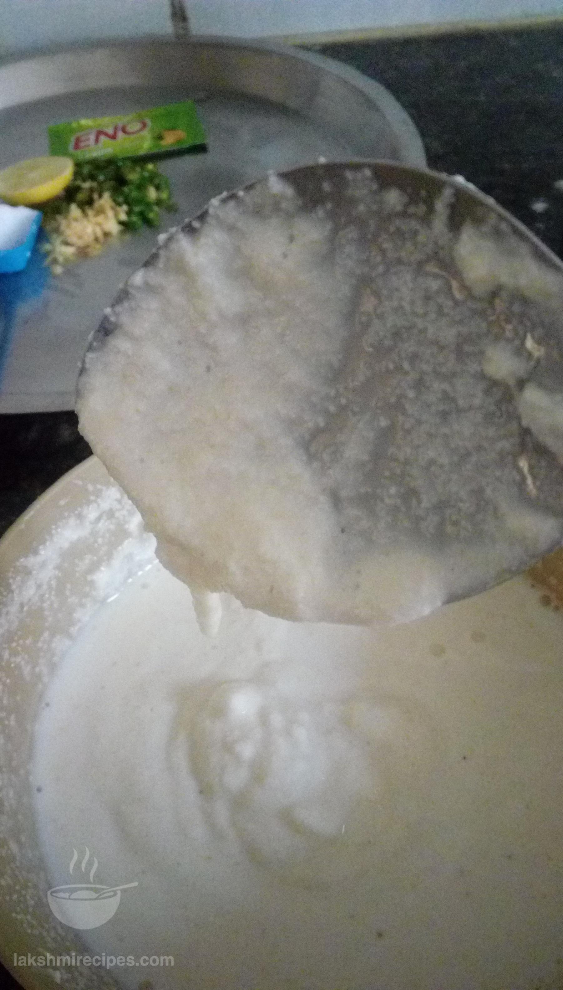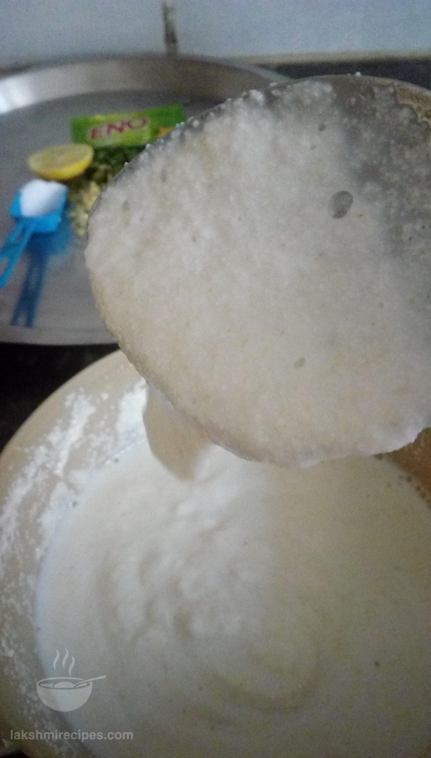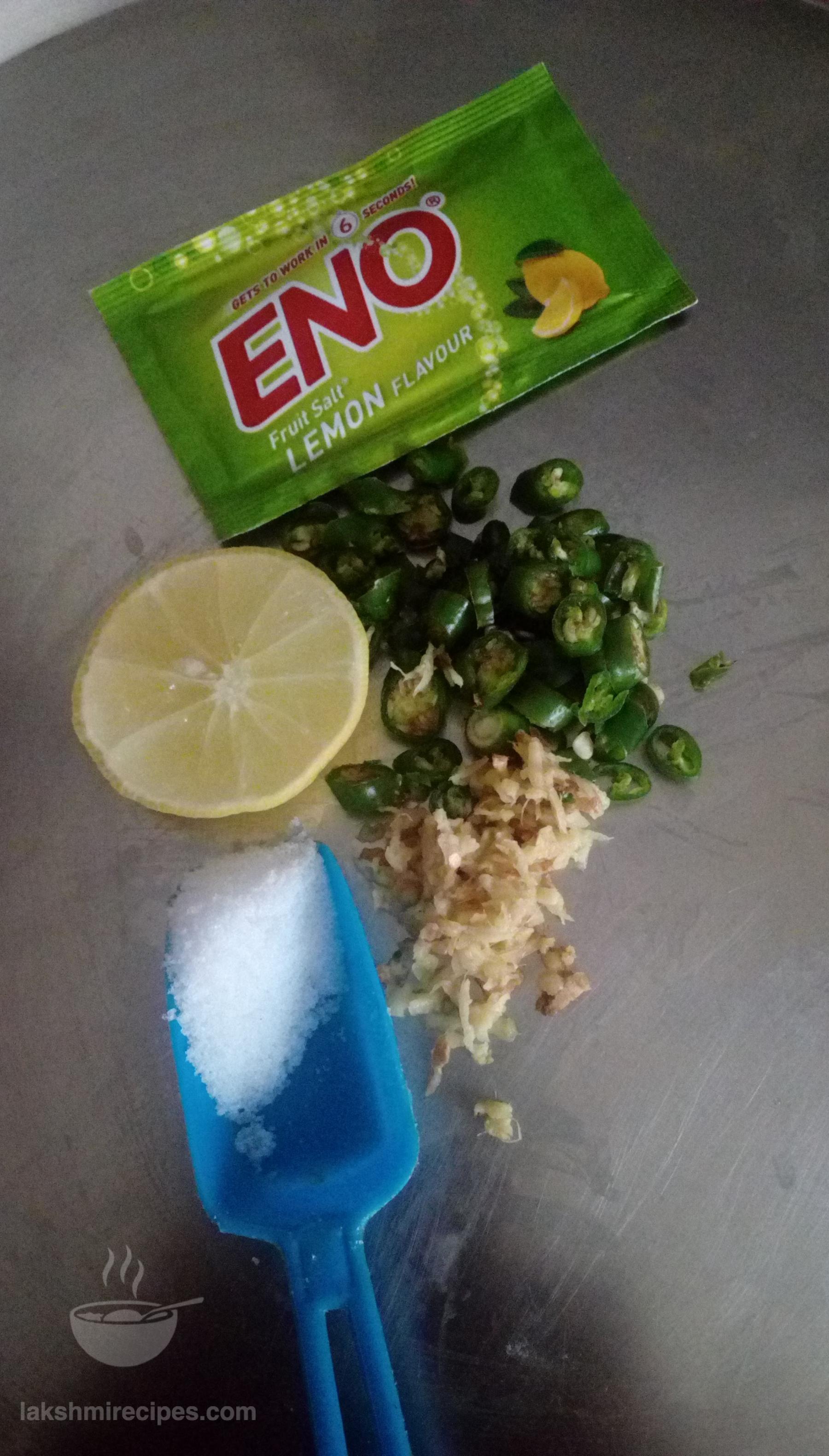 - Now add 1/2 tea spoon eno to it and mix it lightly in the batter. Do not whisk the batter much as it may not rise while steaming.