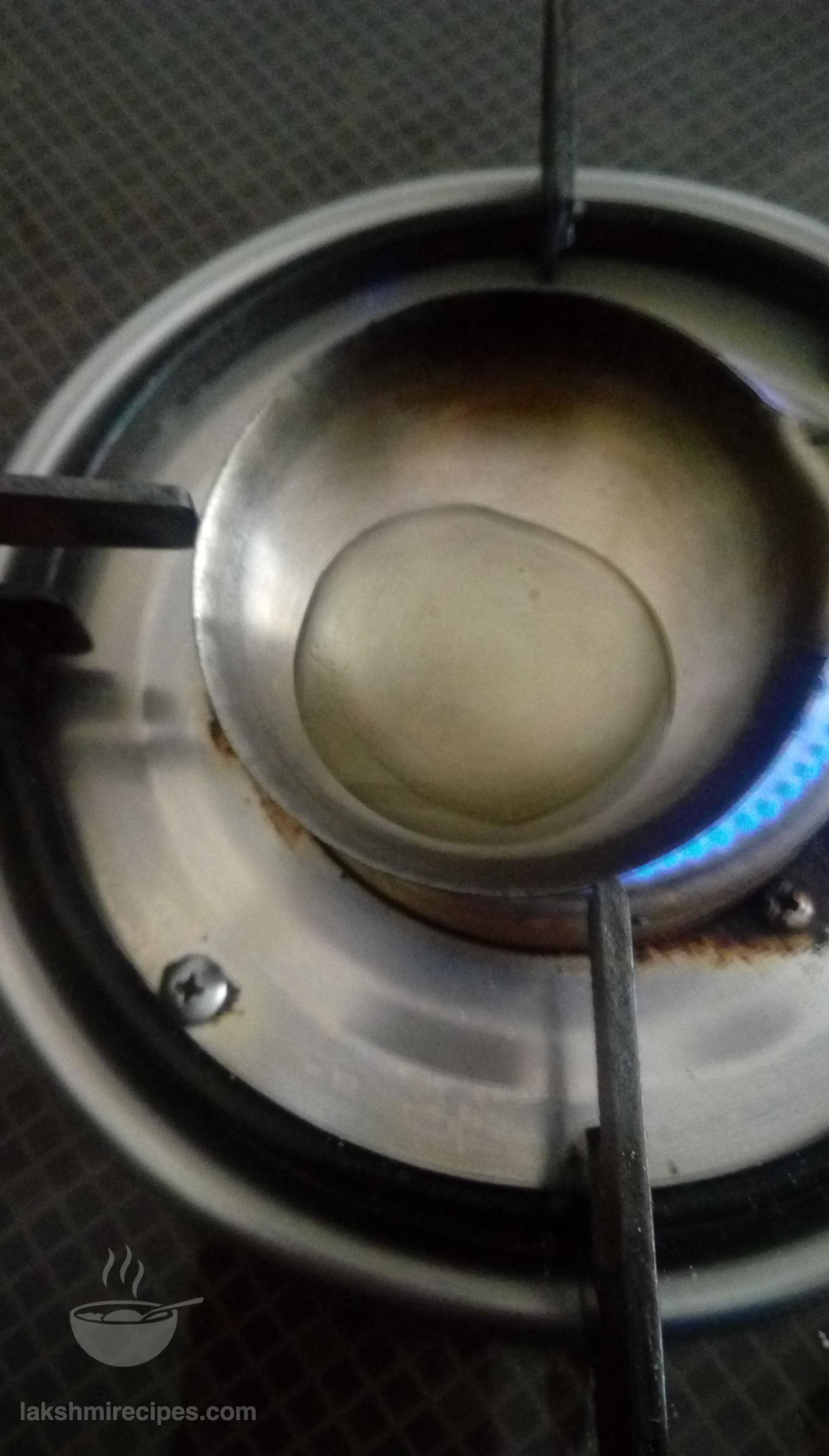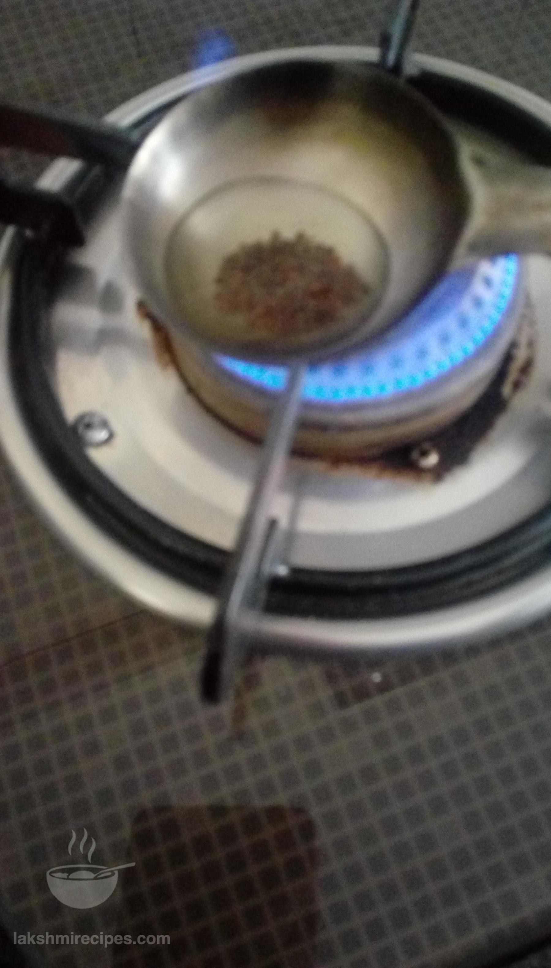 - Now heat 1 tea spoon refined oil in a tadka pan and add mustard seeds (rai) to it.