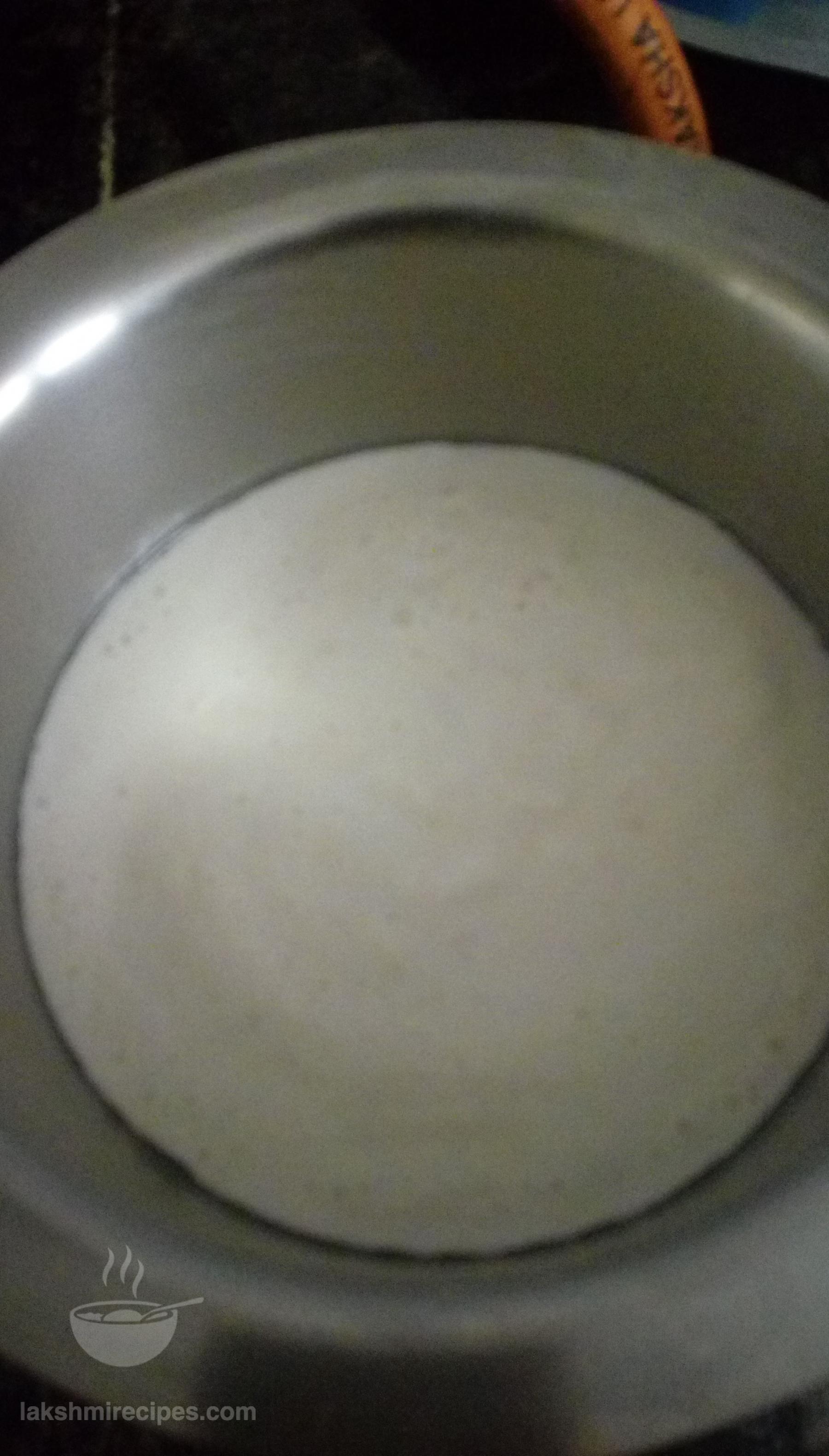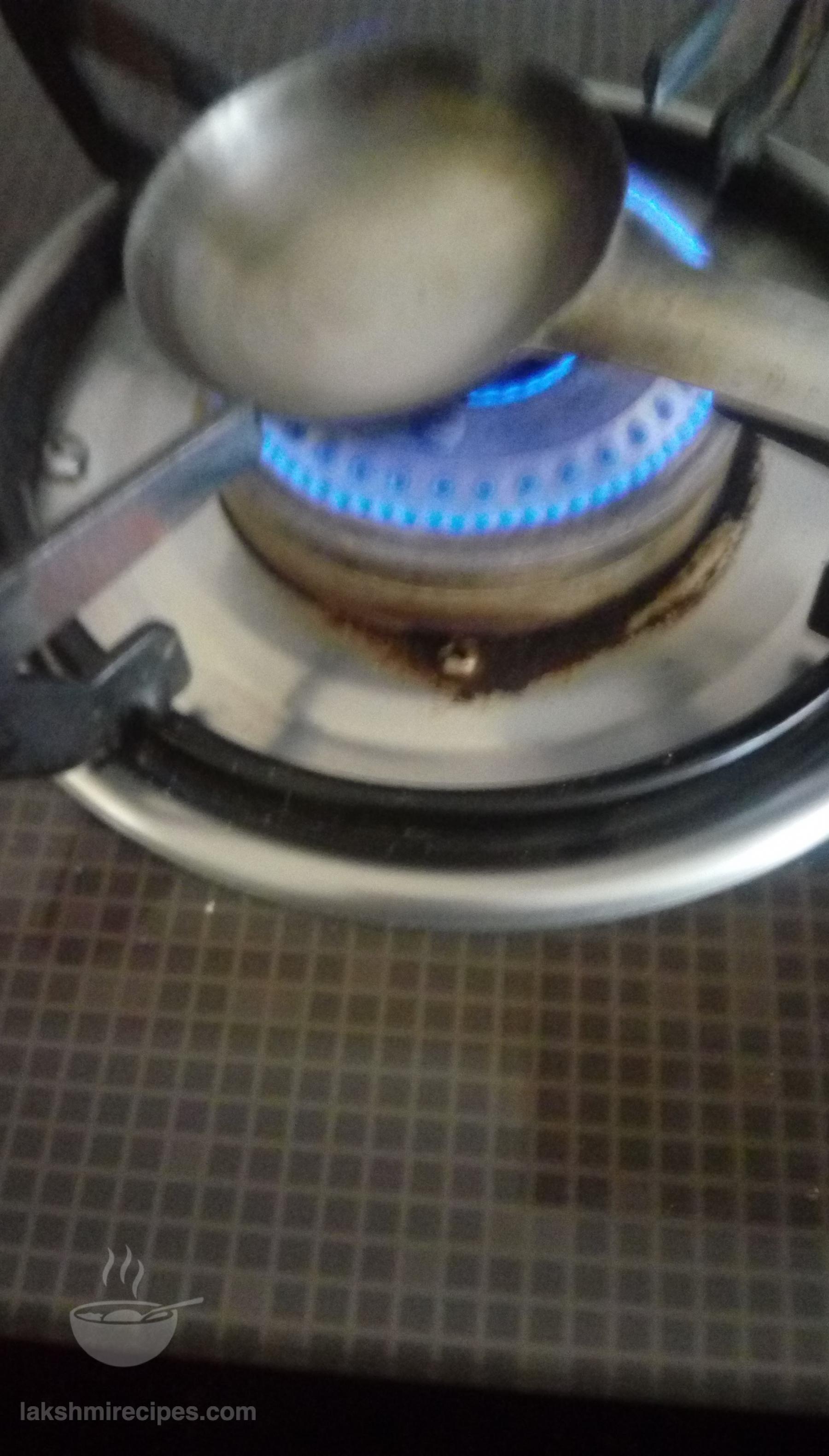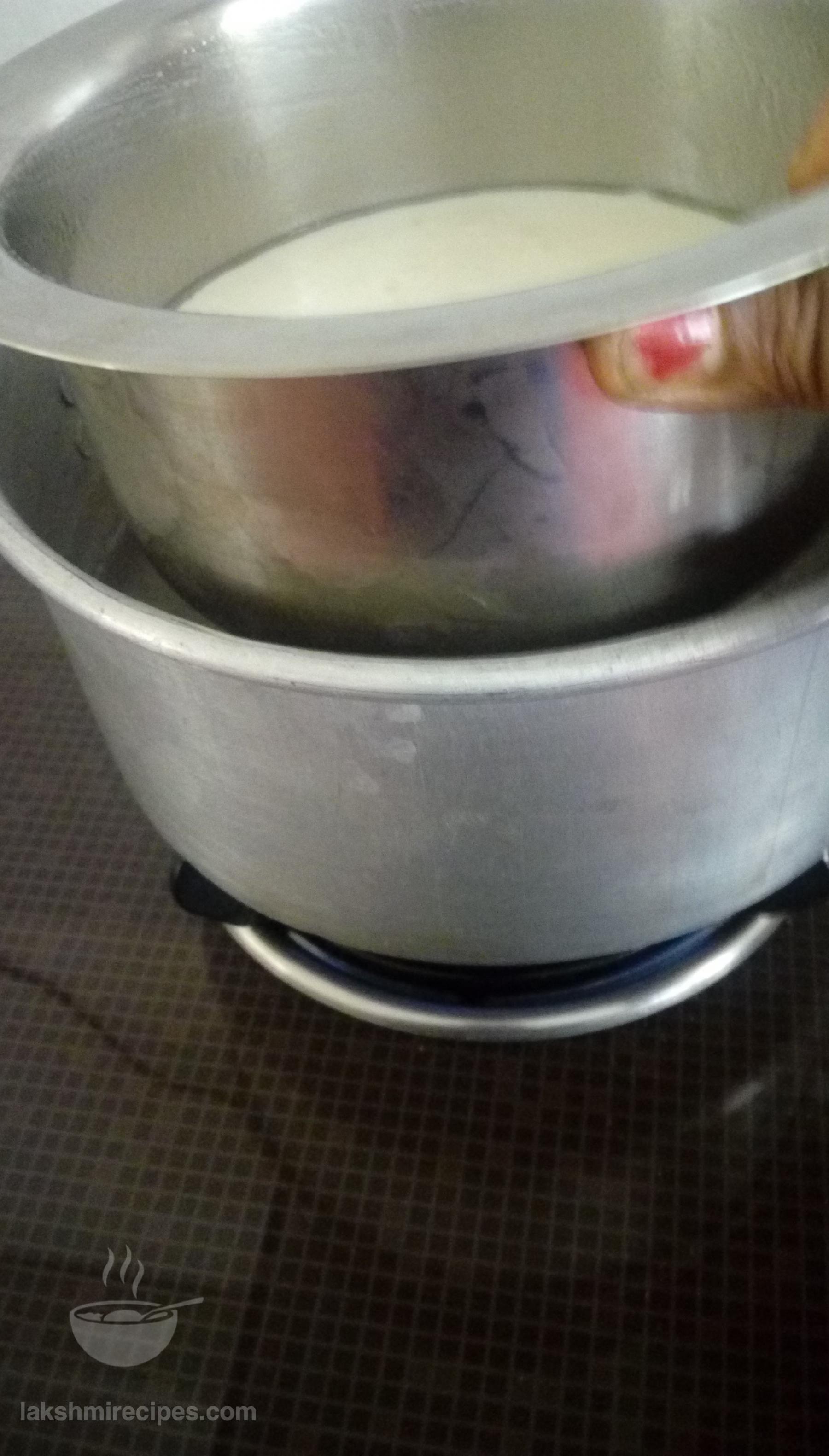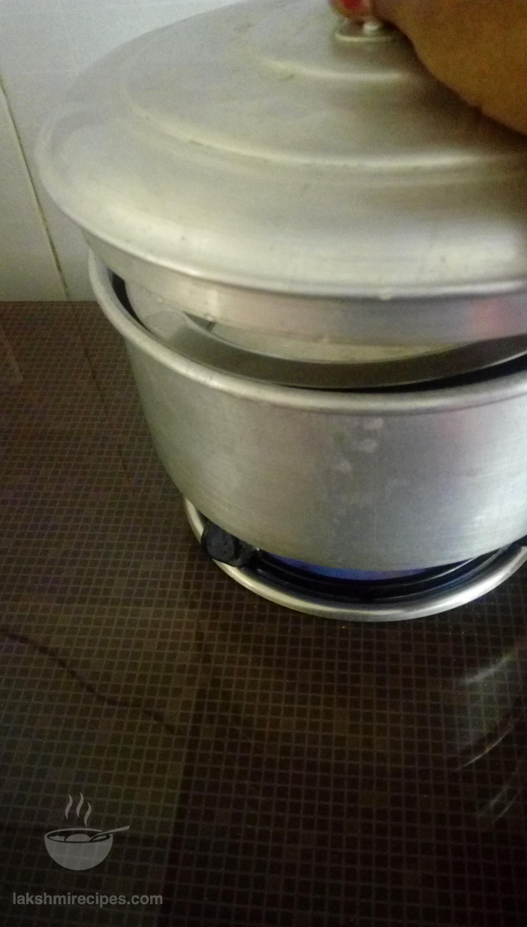 - Place a steamer over the gas stove and add water into it which is half the the height of the vessel containing the batter. Turn on the flame.