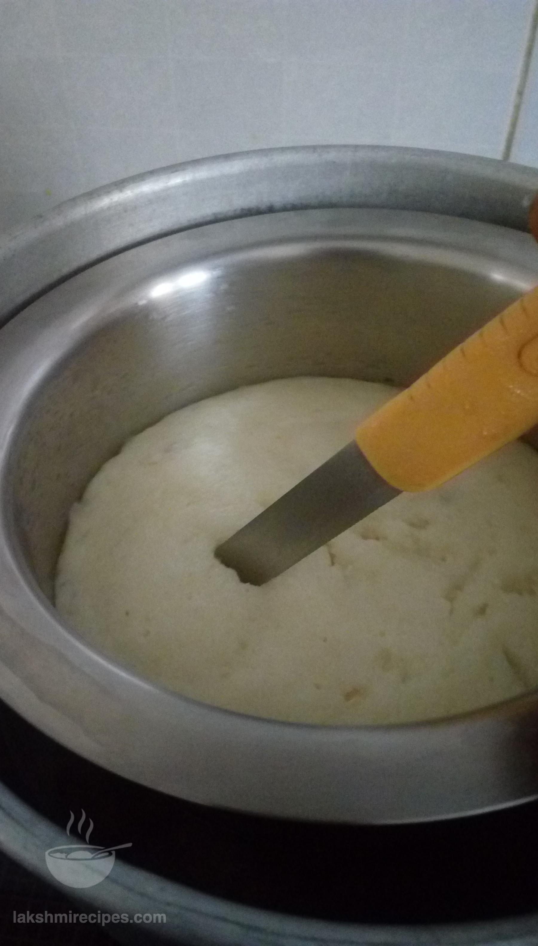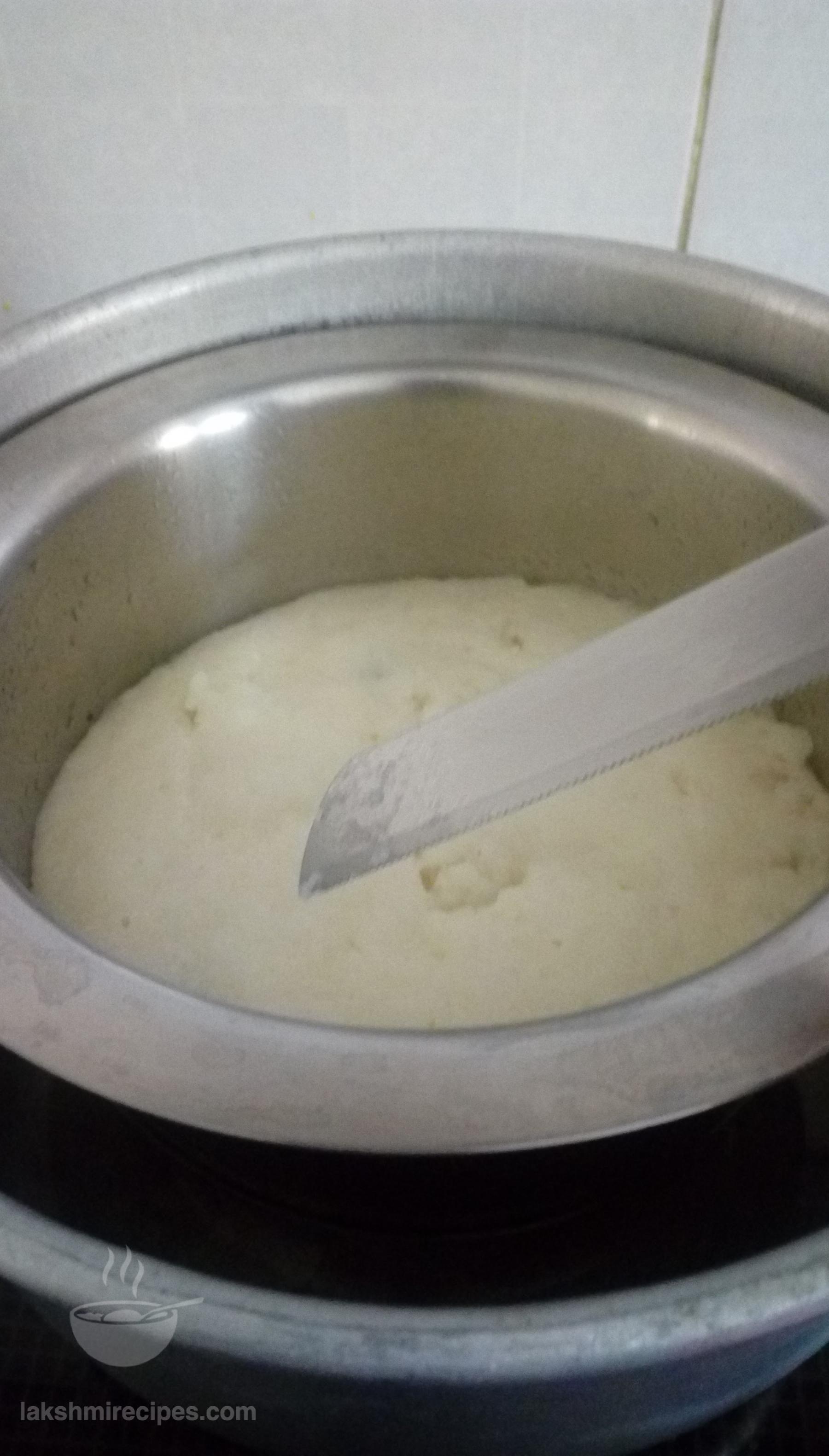 - Now place the vessel containing the batter in the steamer and cover it with a lid. Lower the flame to medium level.
