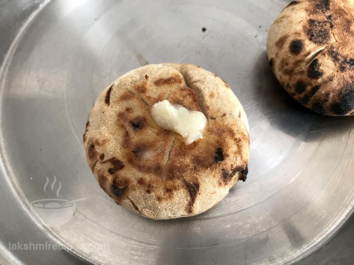 - Transfer the littis to a plate and pour some fresh desi ghee over them. Then serve them hot with Baingan ka Bharta or chokha.