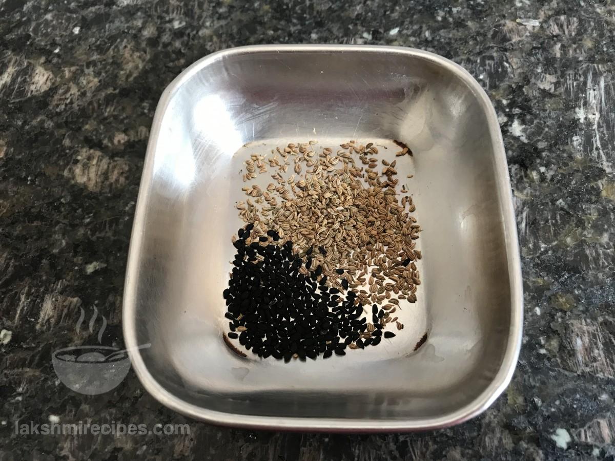 - Then add carom seeds and onion seeds to it, and mix the dry ingredients well.