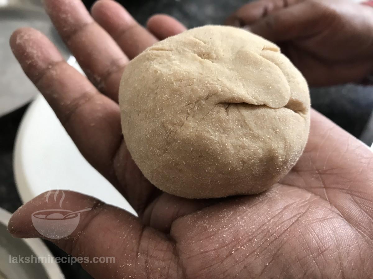 - Now take the whole wheat dough prepared for making Traditional Sattu-Litti and knead it again to smoothen it out.