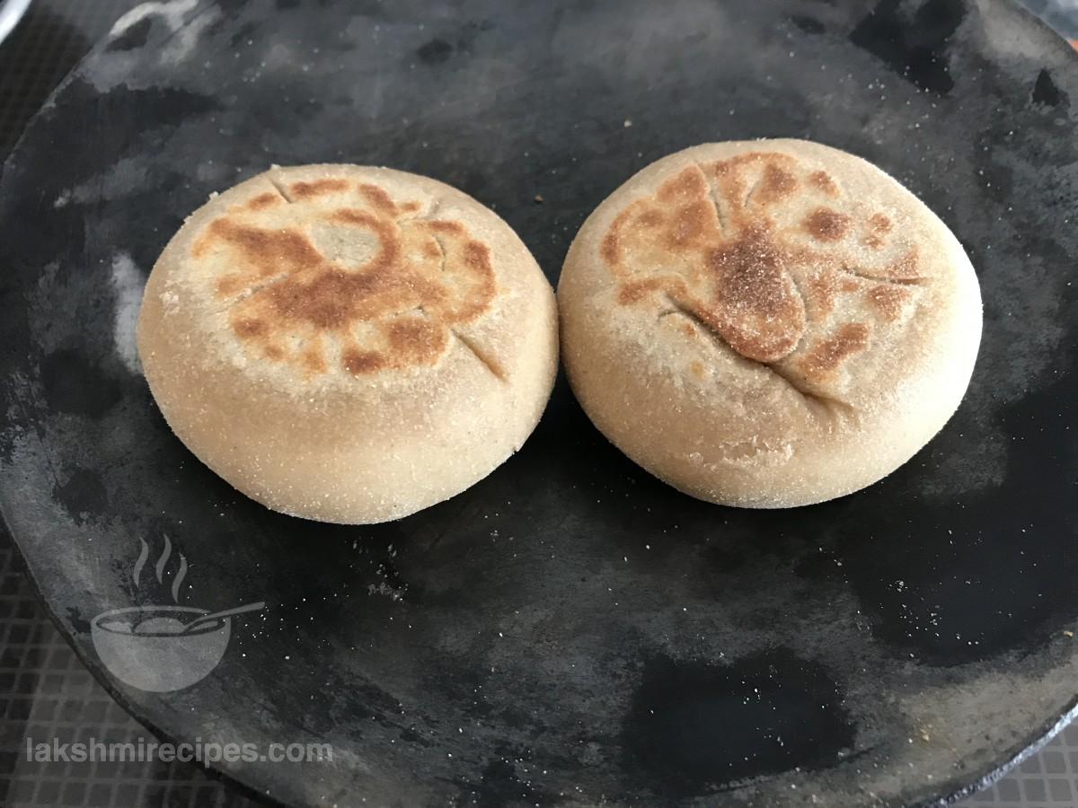- Now place the littis over this hot tawa. Allow them to cook on one side and then flip all of them to cook on the other side.