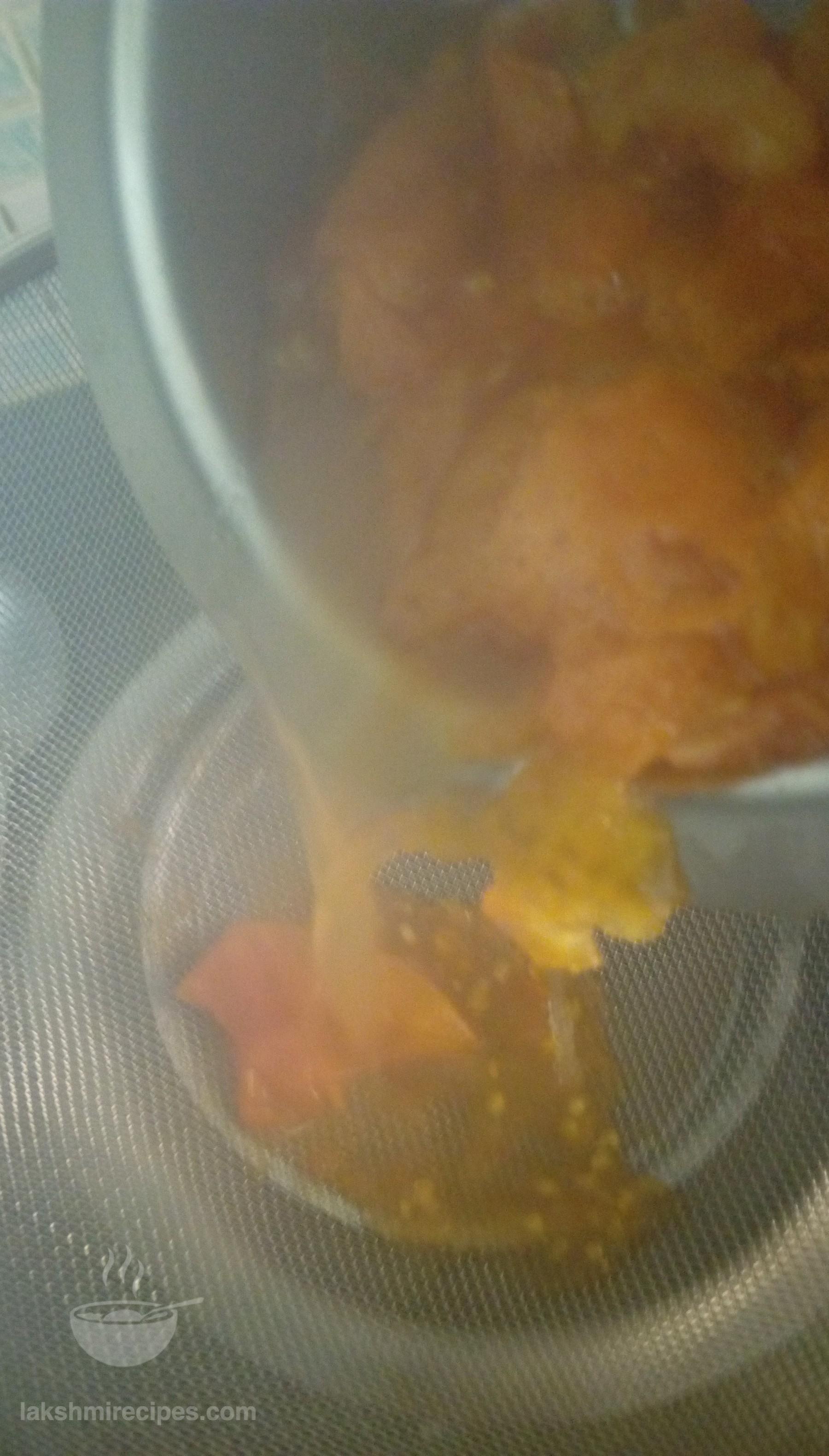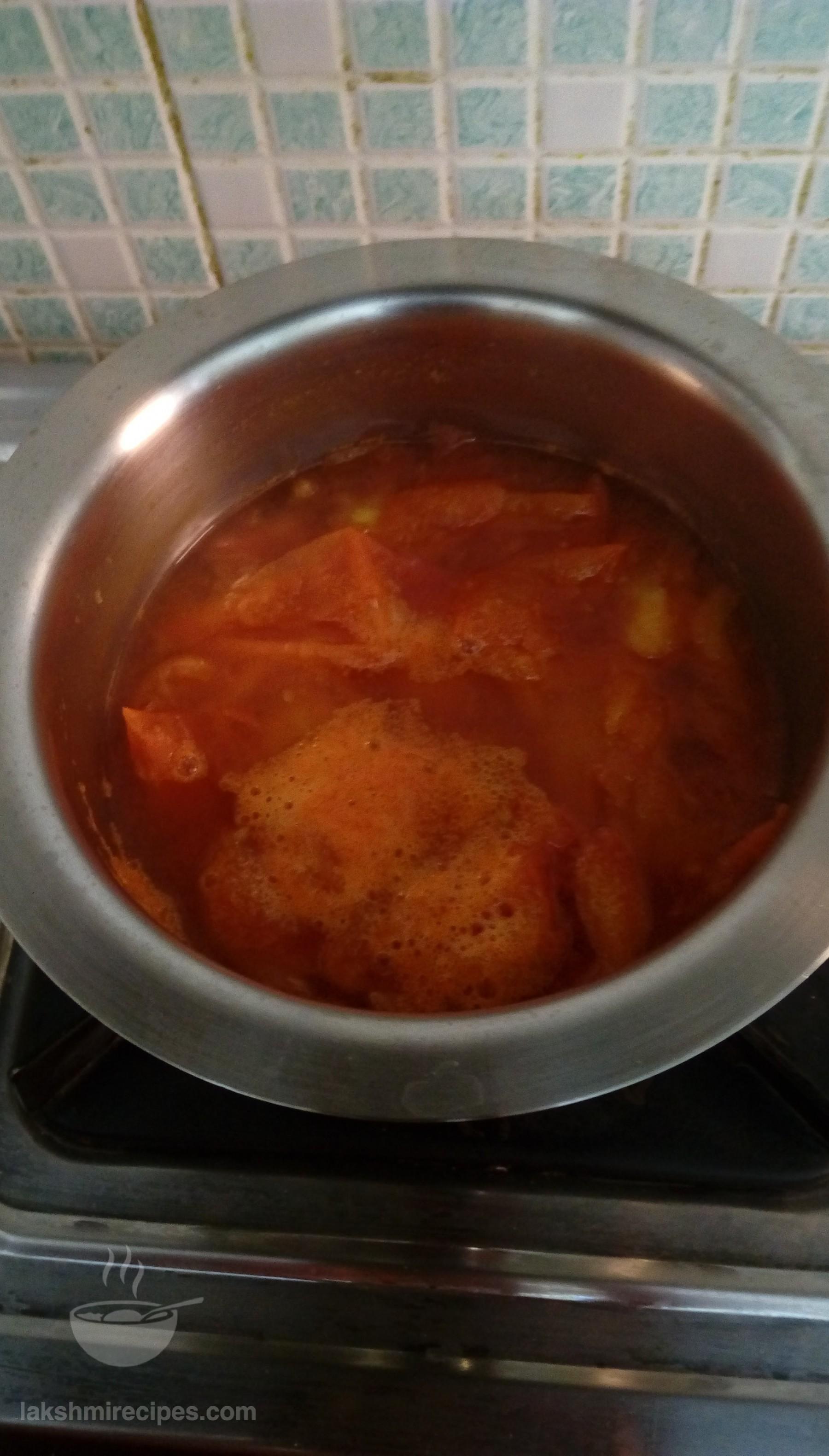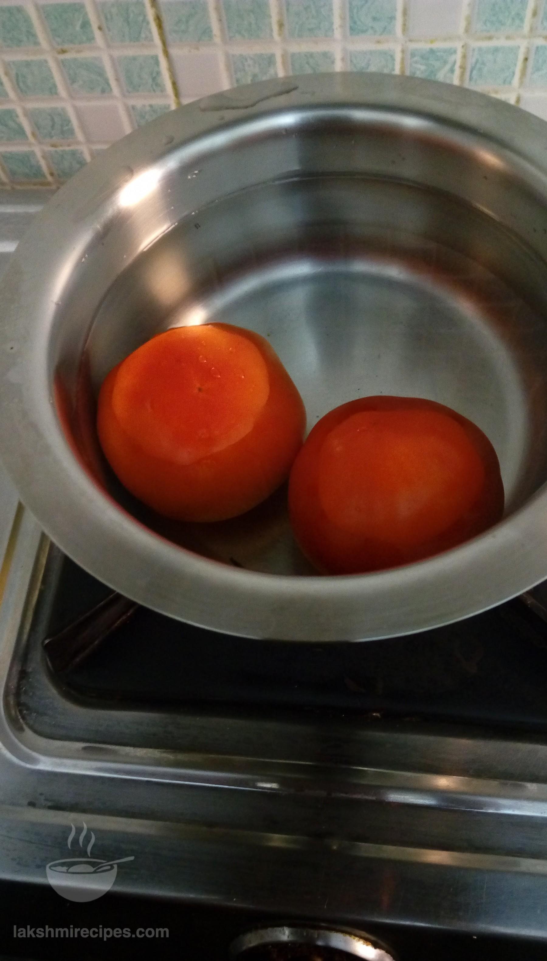 - Boil the water in a deep vessel, and then add the chopped tomatoes to it.
