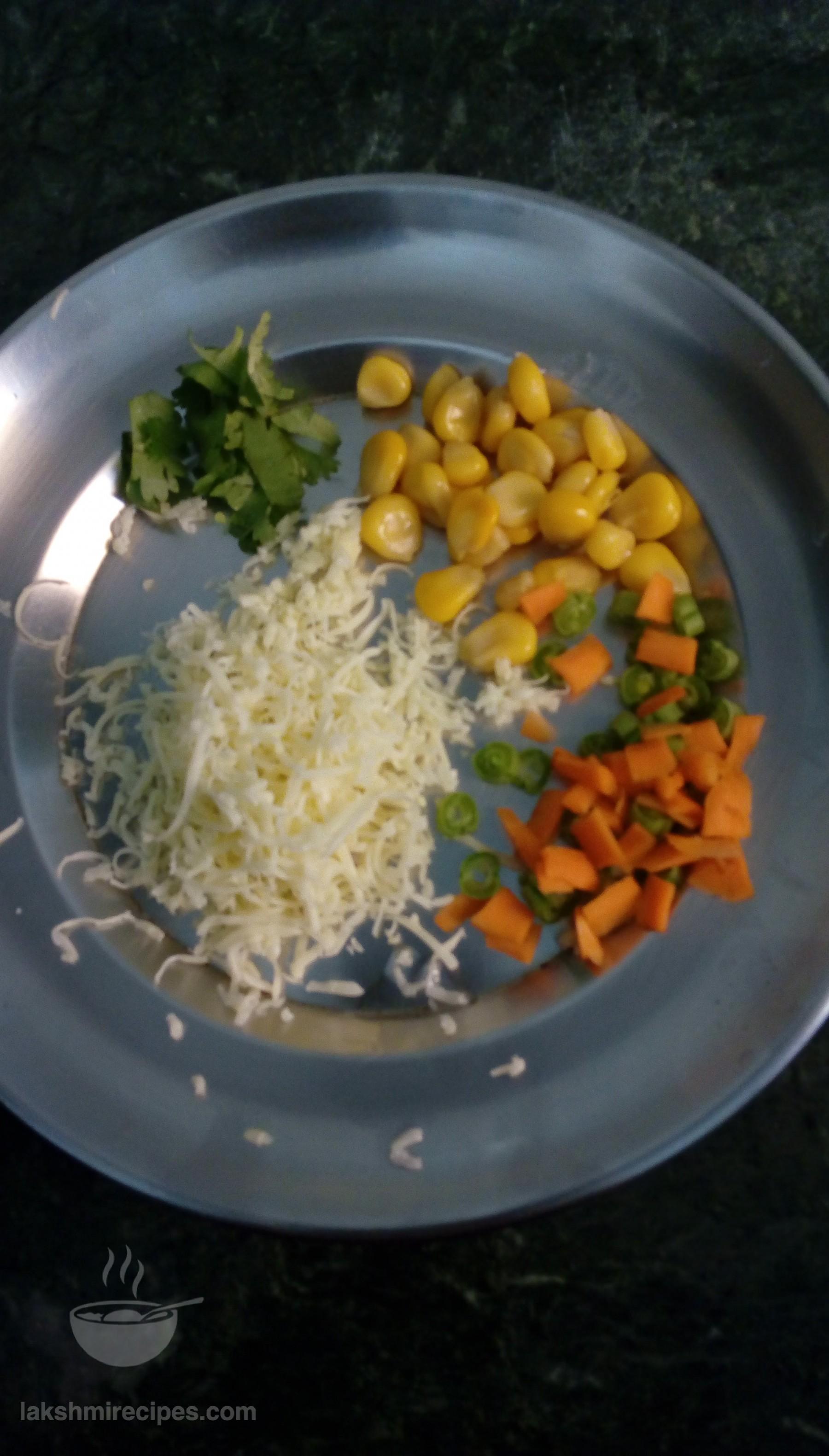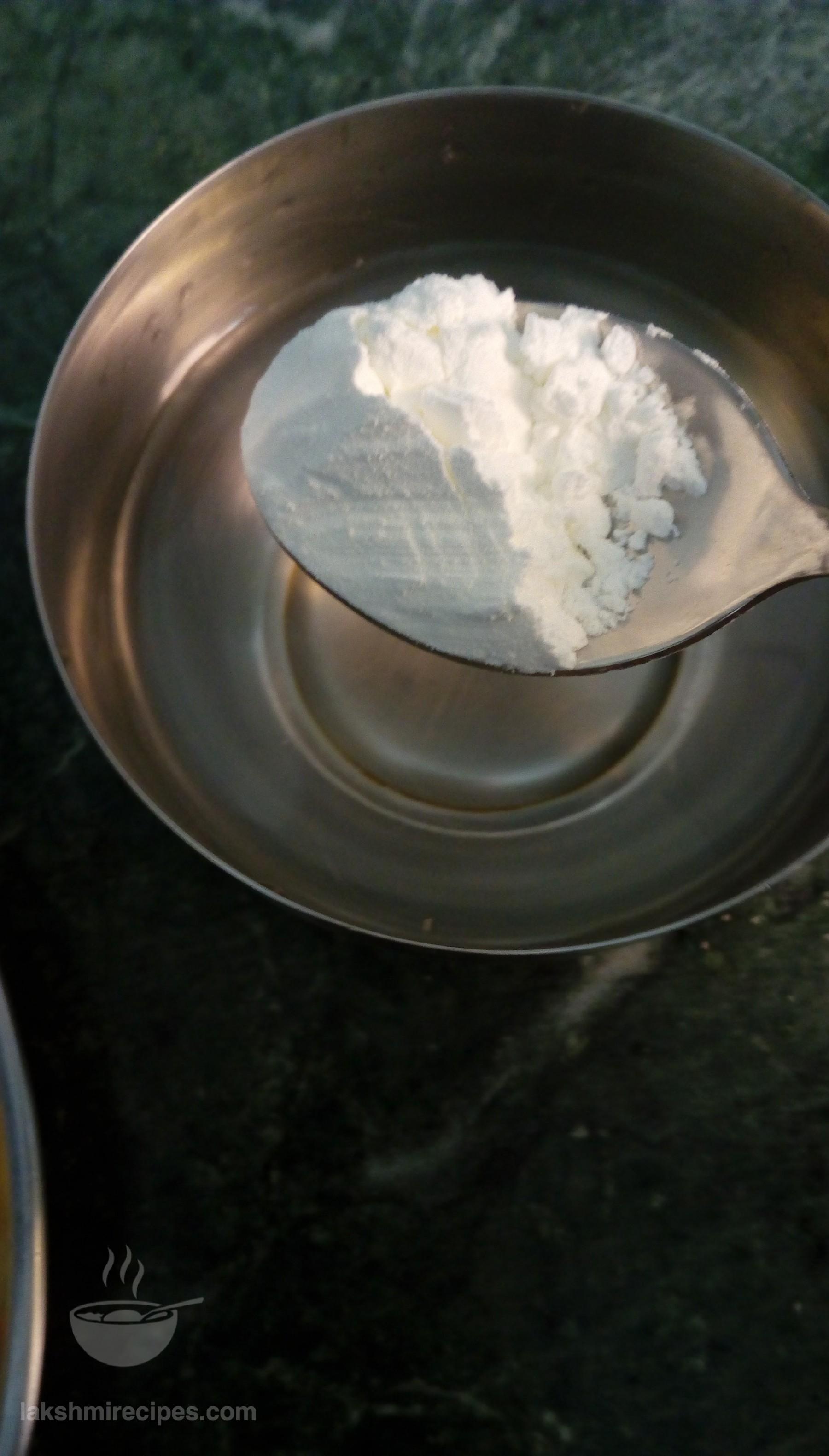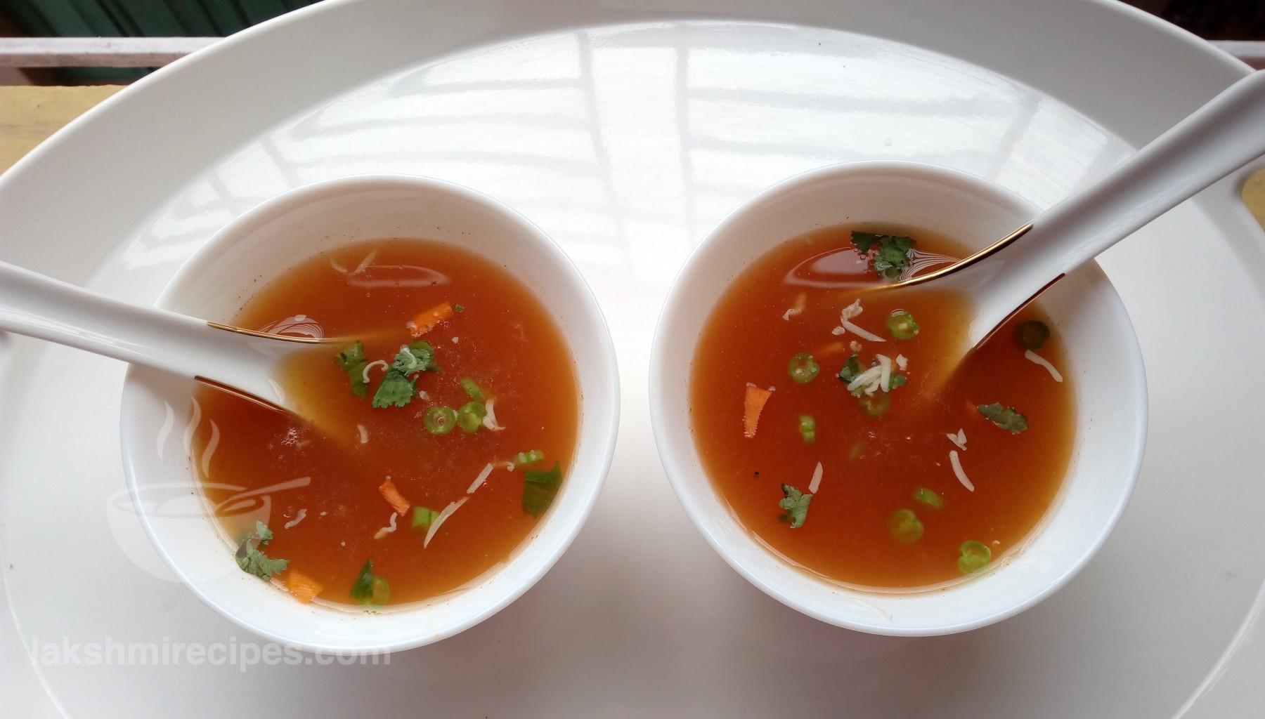 - Water - 2.5 big cup (if the required amount of soup is two cups) + 1/2 cup to prepare the corn flour solution