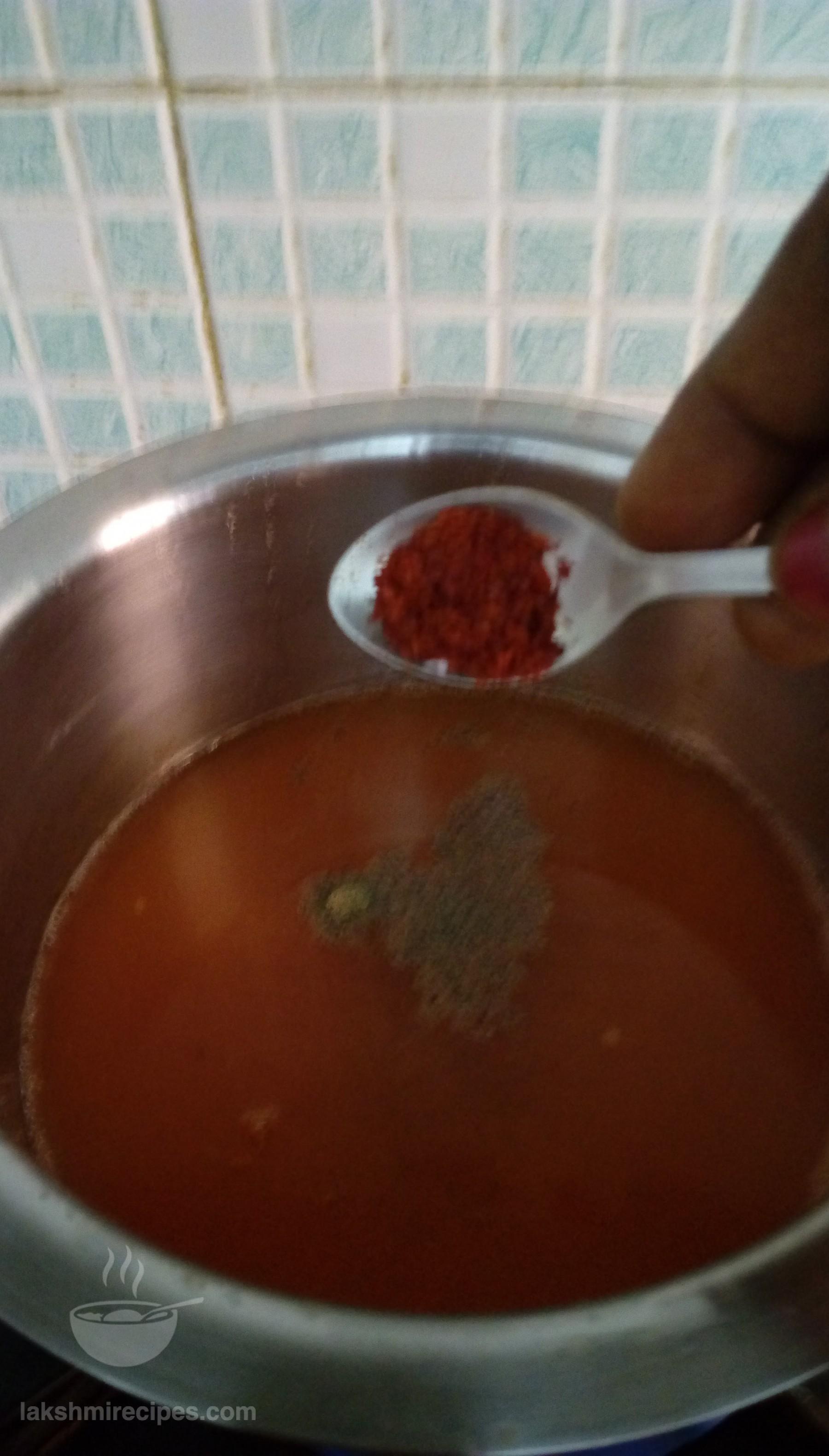 - Boil till the tomato pieces become soft and the water takes up all the color.