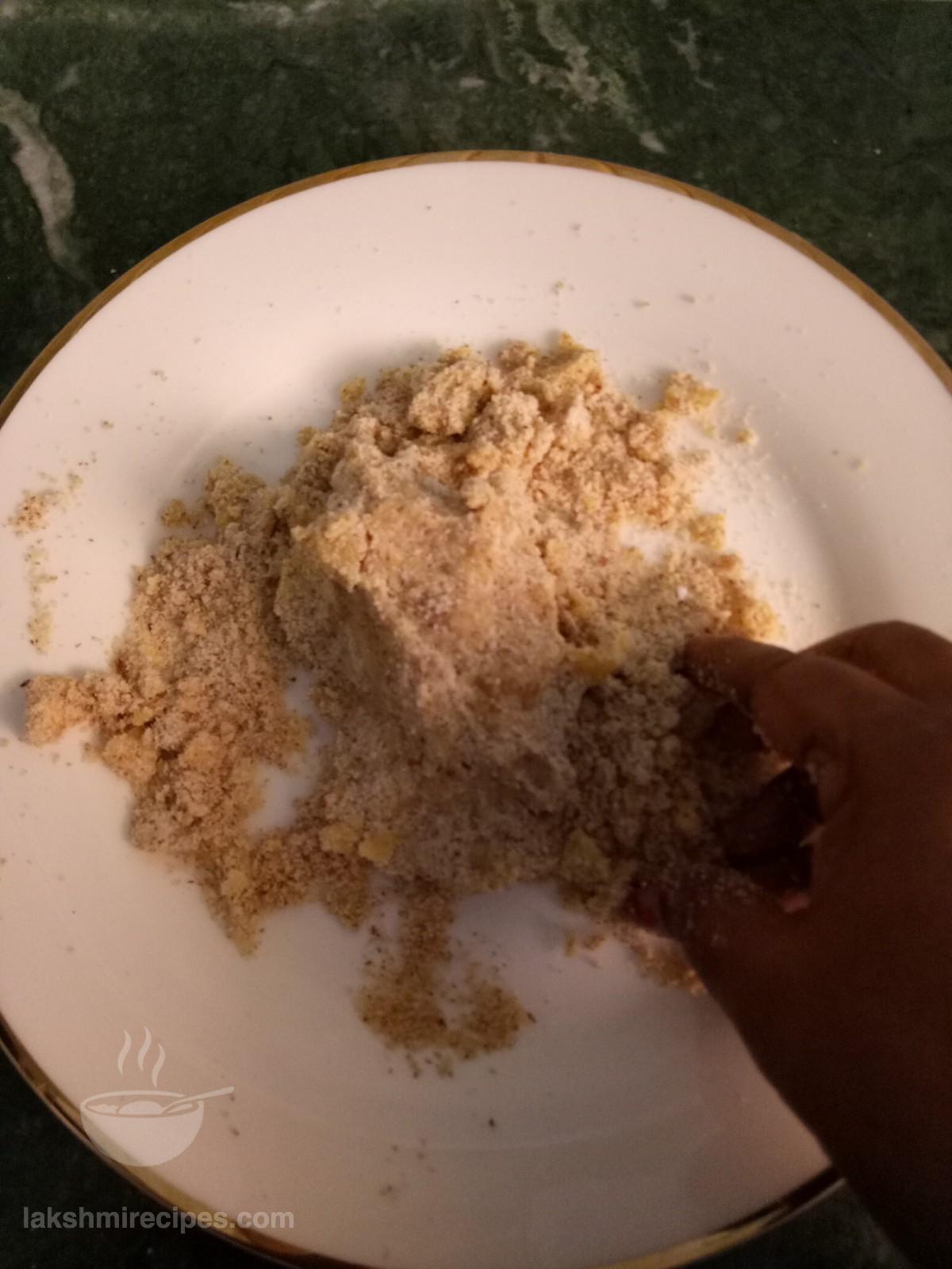 - तीनों सामग्री को अच्छी तरह से मिलाएं, और आटा के जैसा गून्ध लें।