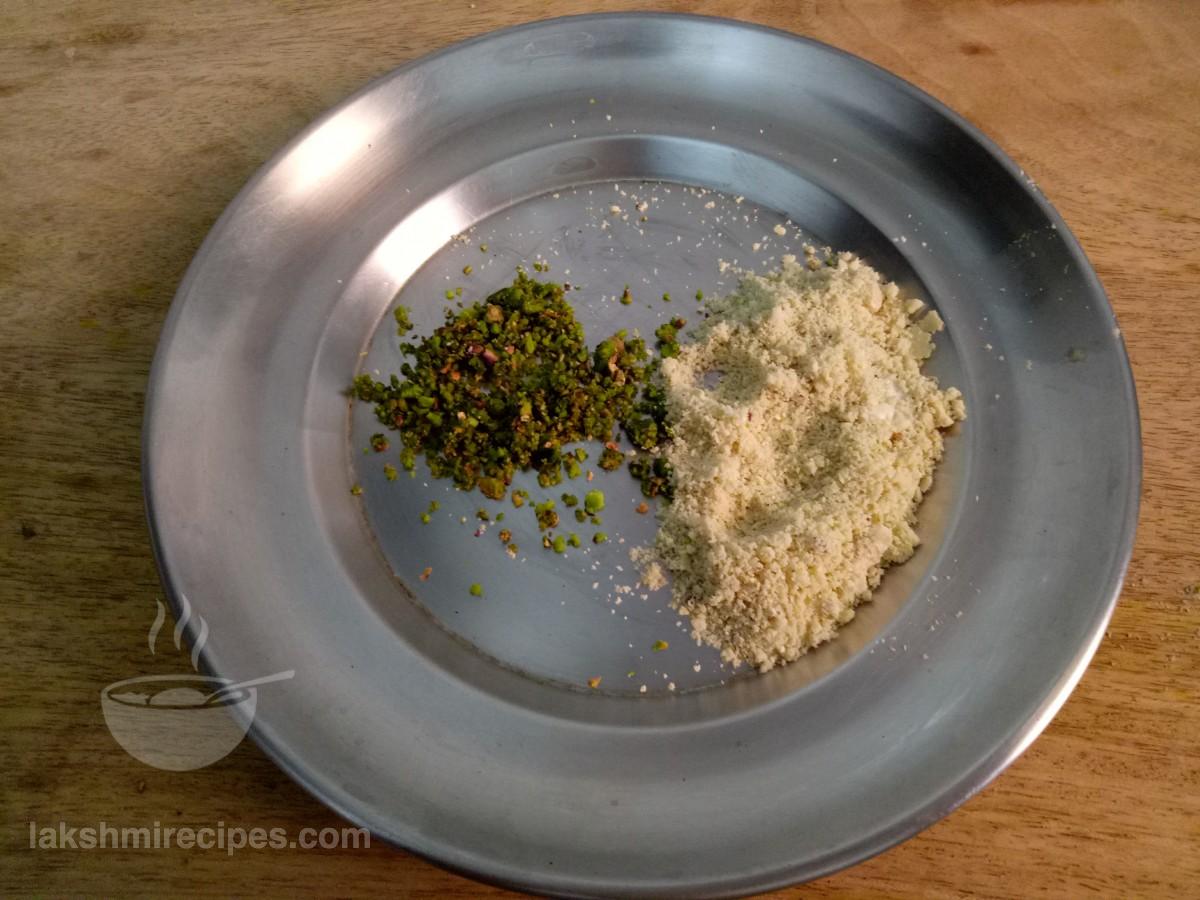 - Almonds and Pistachios - 1-2 table spoon or as per requirement, roughly chopped or roughly ground; (बादाम और पिस्ता)