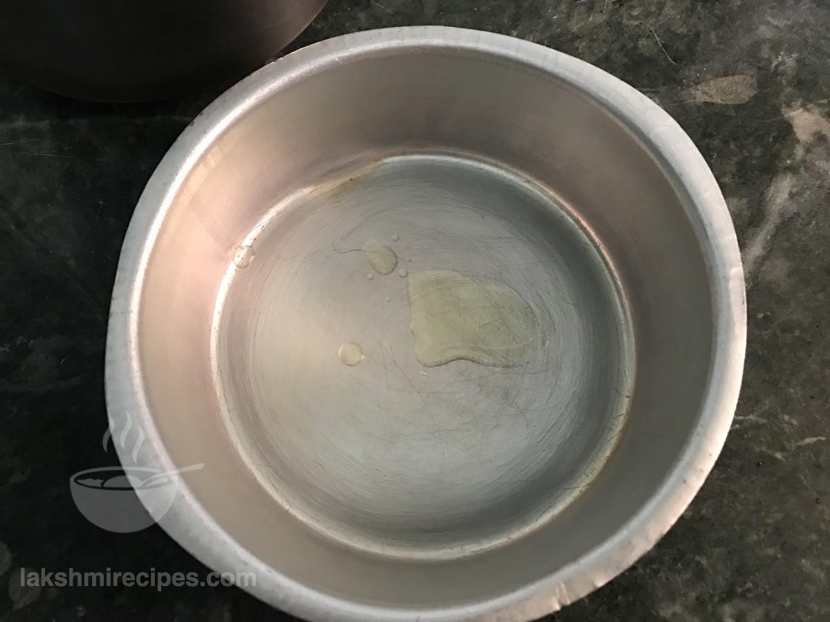- During this time take a cake tin and grease it with 1 tea spoon oil nicely on all sides.