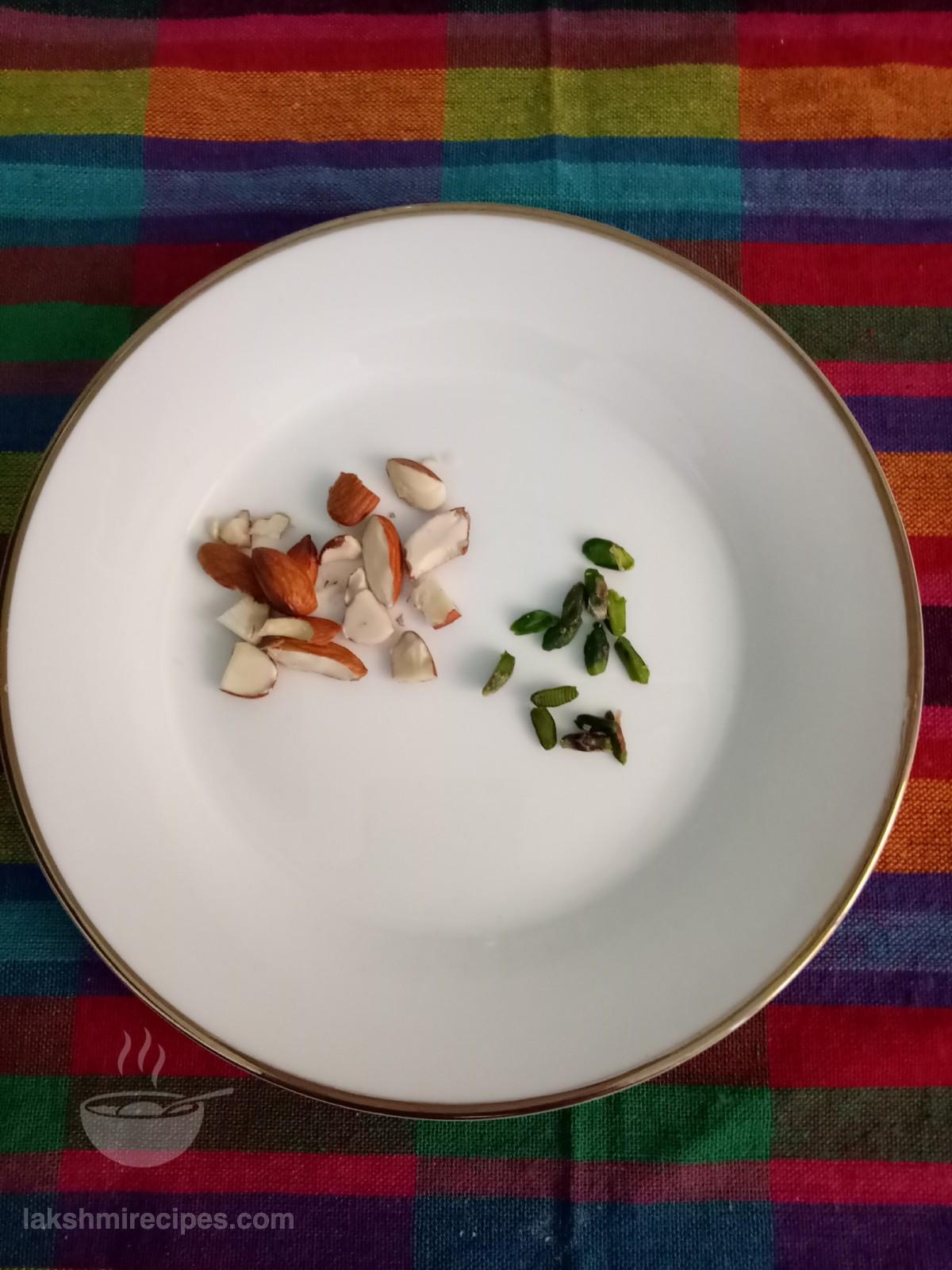 - Pistachios - 1 tea spoon; (पिस्ता)