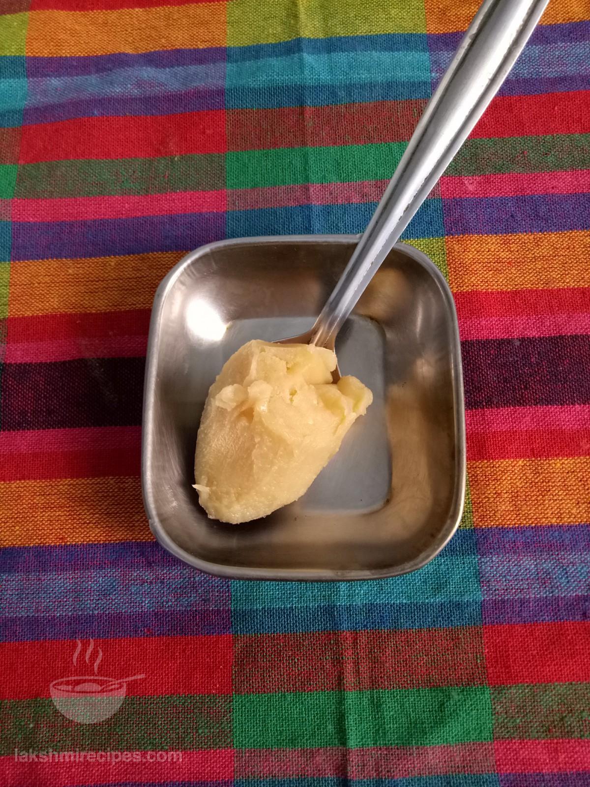 - Heat a non-stick pan and add 1 table spoon shuddh ghee to it. When the shuddh ghee is hot enough then lower the flame to medium level.