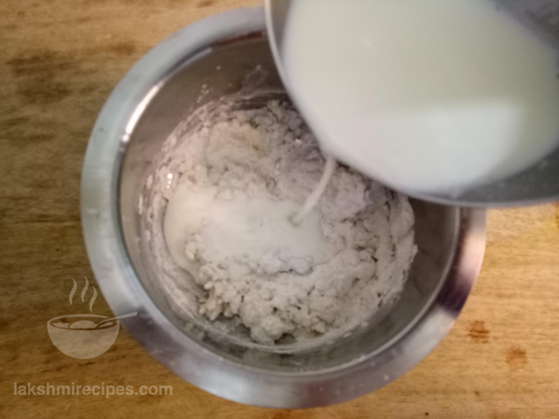 - Now add a little milk. Mix it well to form a paste like texture. Ensure that no lumps are formed.
