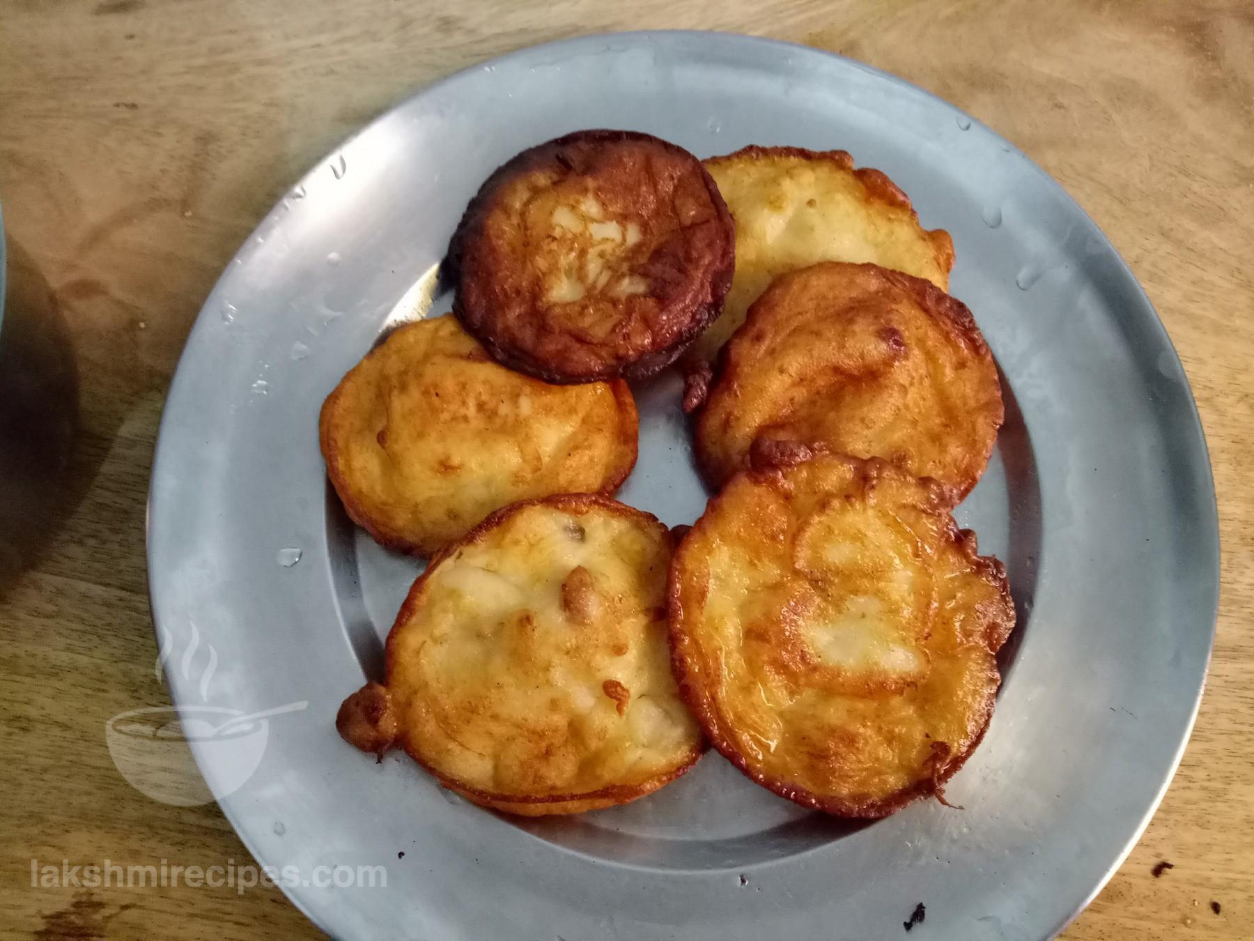 - When one side turns crispy golden red in color then flip it slowly to fry in the similar manner. Transfer the pua to plate and prepare pua of the remaining batter in the same pattern. The pua being prepared should be of uniform shape and size.