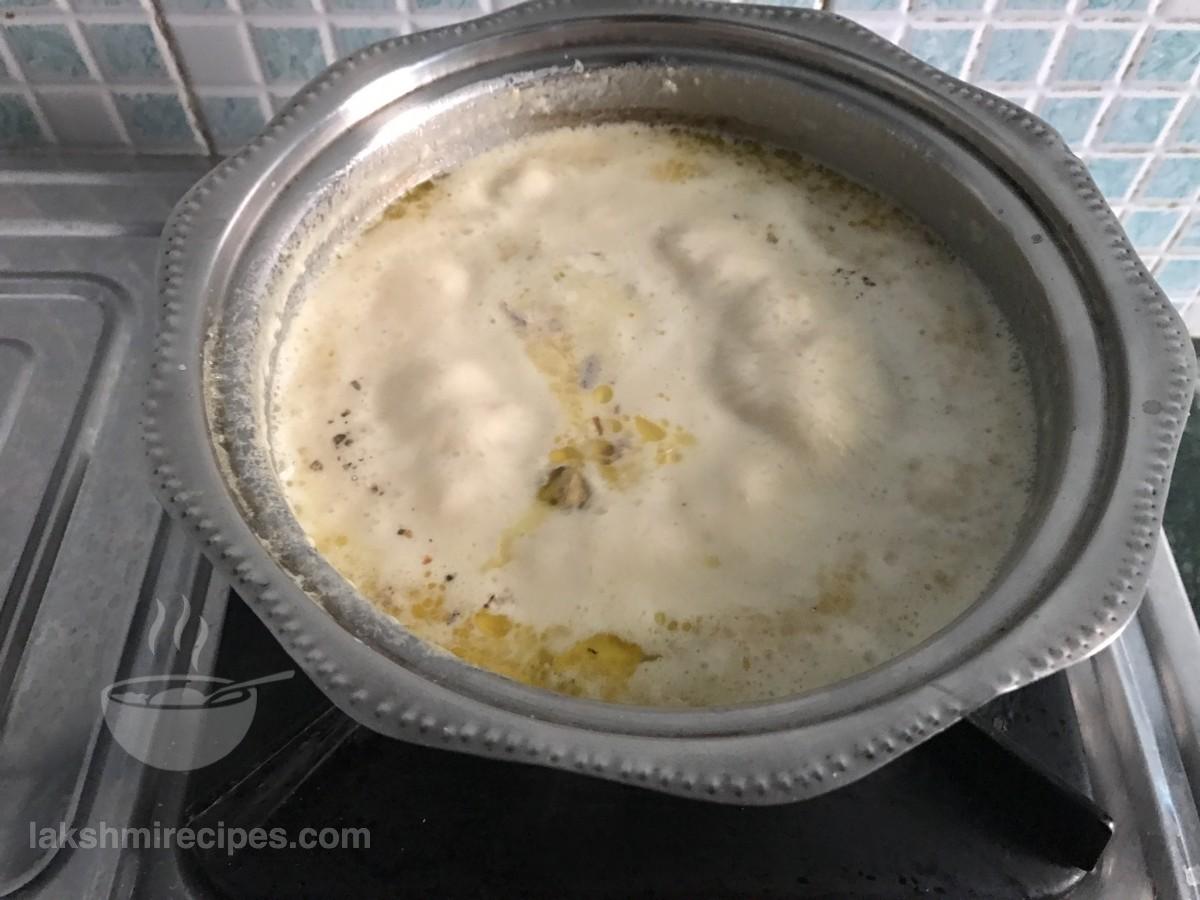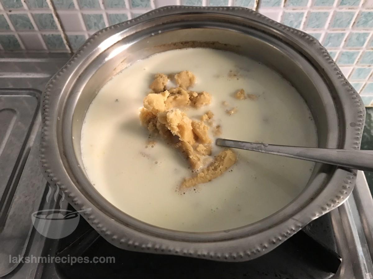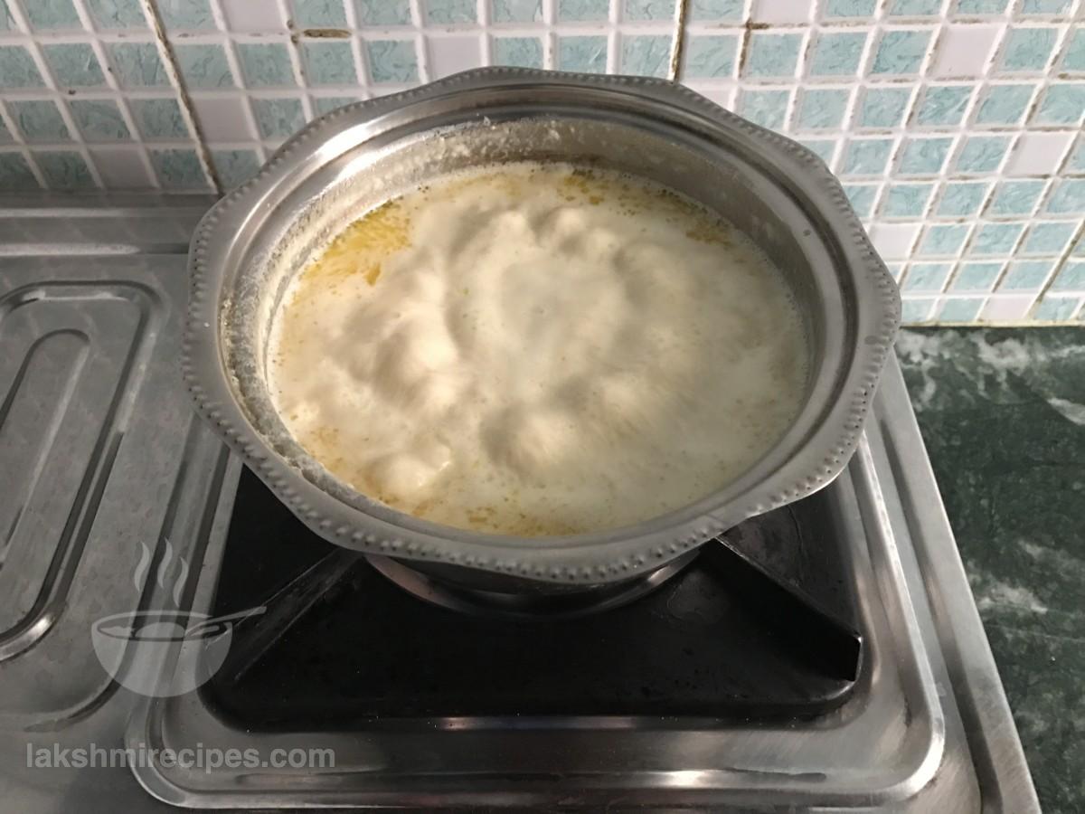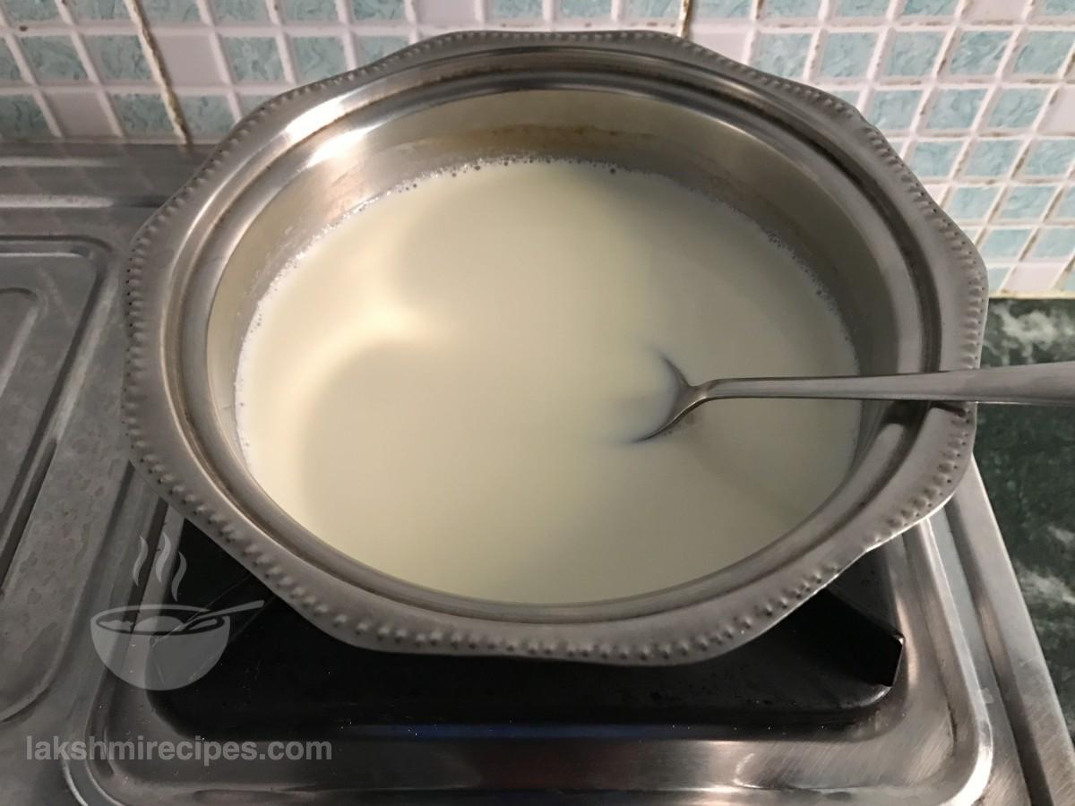 - Pour 1/2 litre milk in a deep vessel and set it to boil.