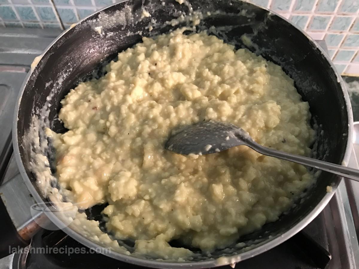 - फिर छेना को गरम नाँन-स्टिक पैन में डालें और 2 मिनट तक लगातार चलाएं।