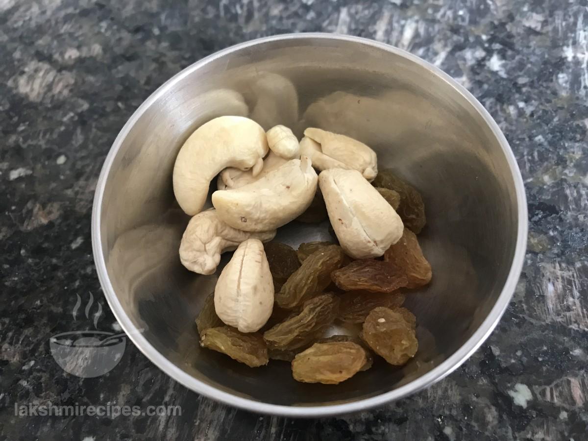 - Dry Fruits - as per taste (Cashews and raisins); (ड्राई फ्रूट्स)