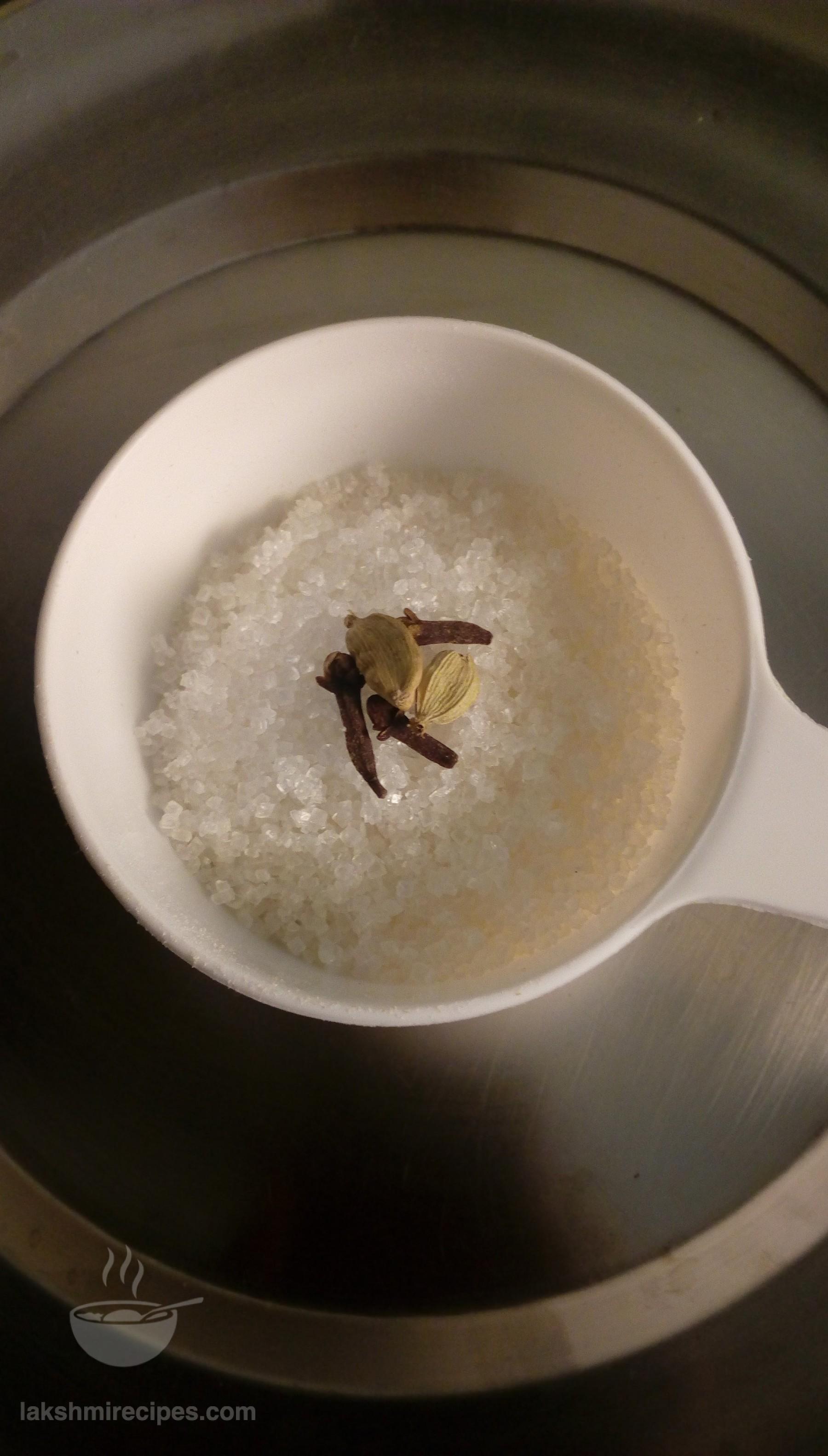 - Keep stirring continuously and during this process add the cardamom (chhoti elaichi) or cardamom powder (choti elaichi powder) and cloves (laung).