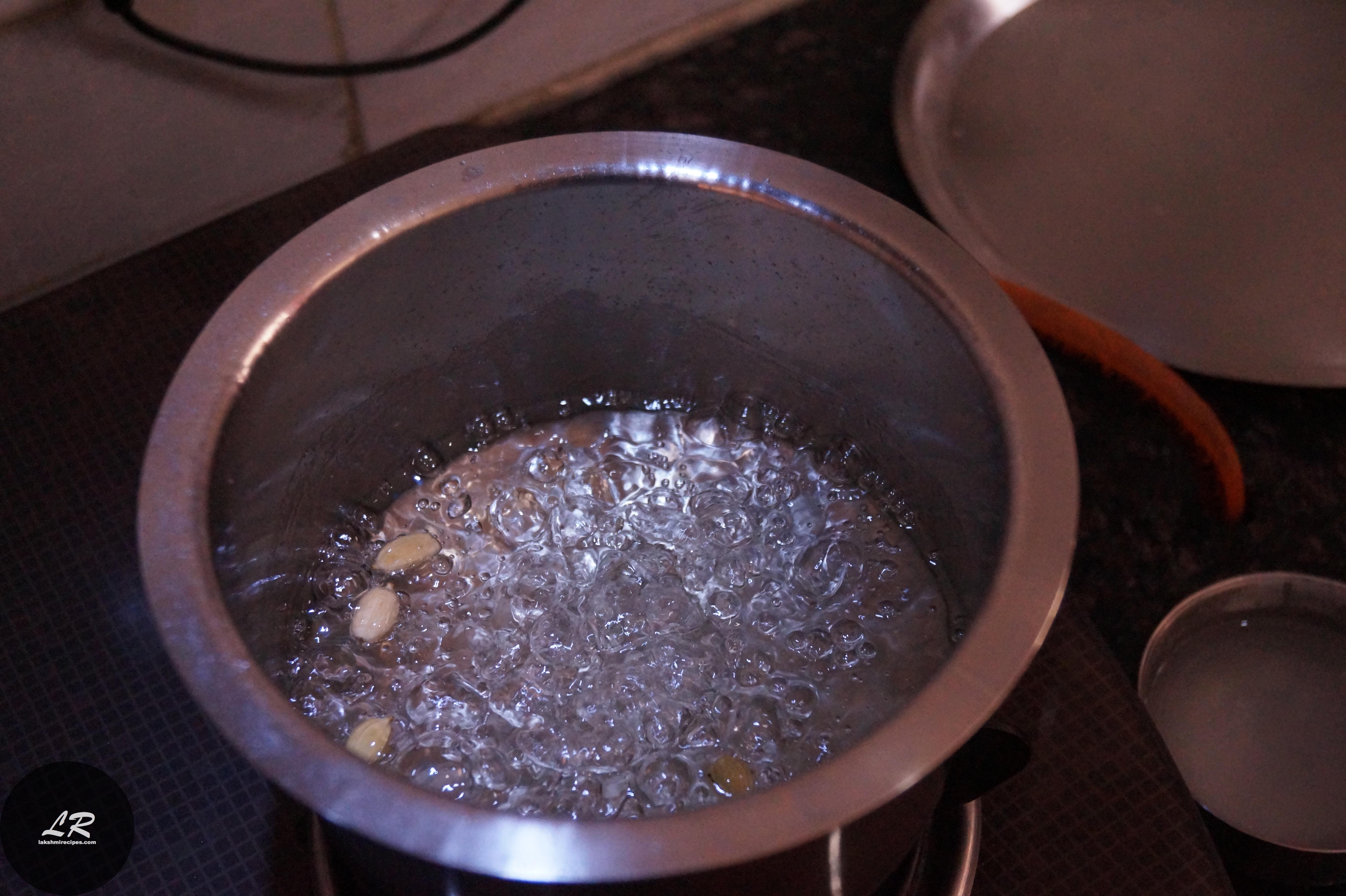 - Add cardamom (chhoti elaichi) when the contents come to boil and stir.