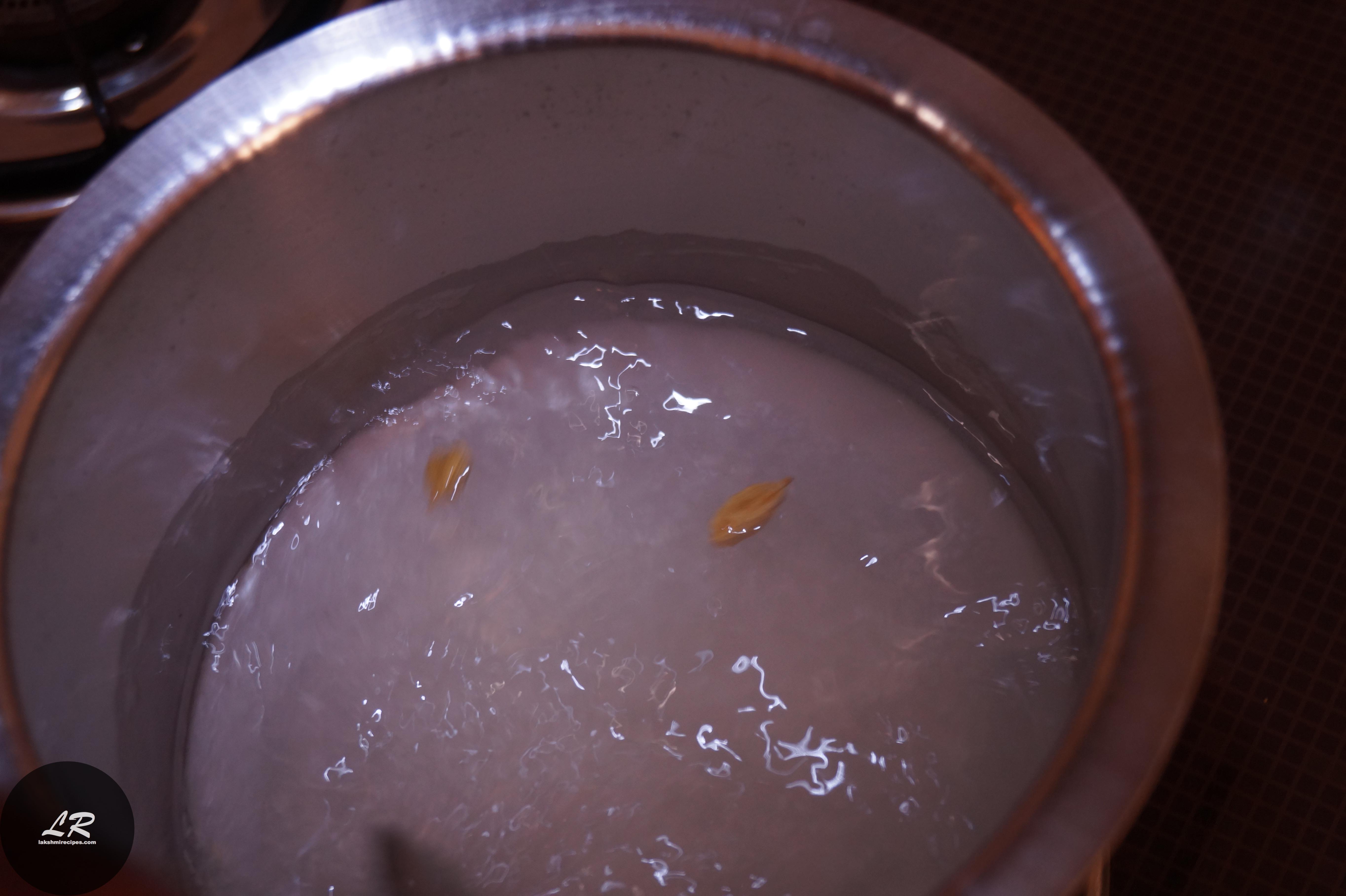 - In a deep vessel (bhagona or pateela), pour water and add sugar to it. Boil the wtaer.