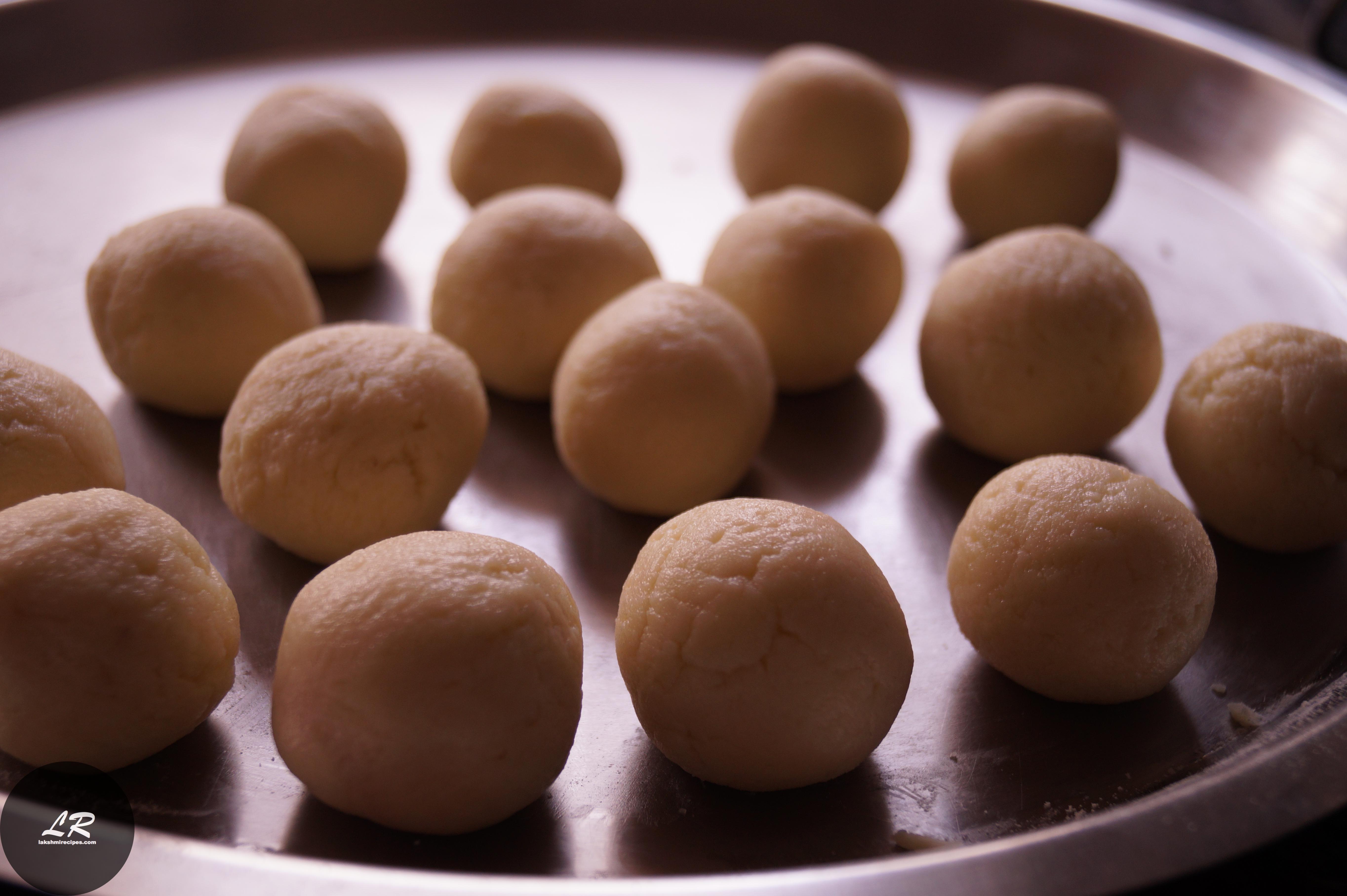 - Now make small balls of the dough prepared and keep them in a seperate plate.