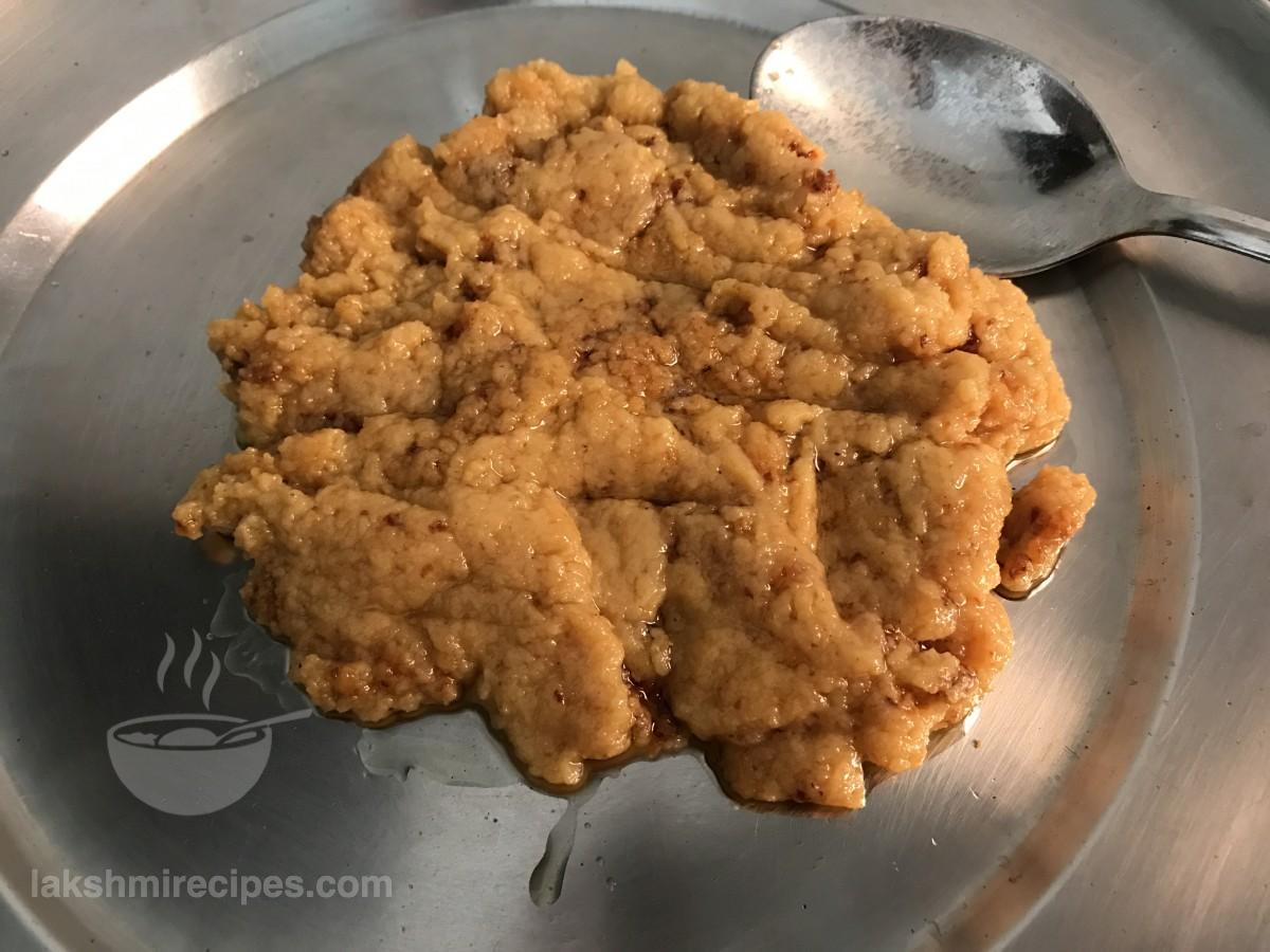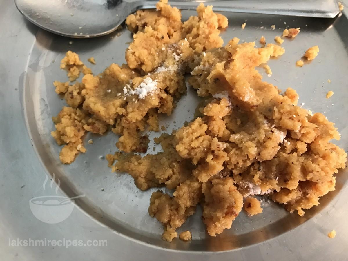 - Transfer the prepared khoya to a plate and allow it to cool. Then crumble it with your hands.