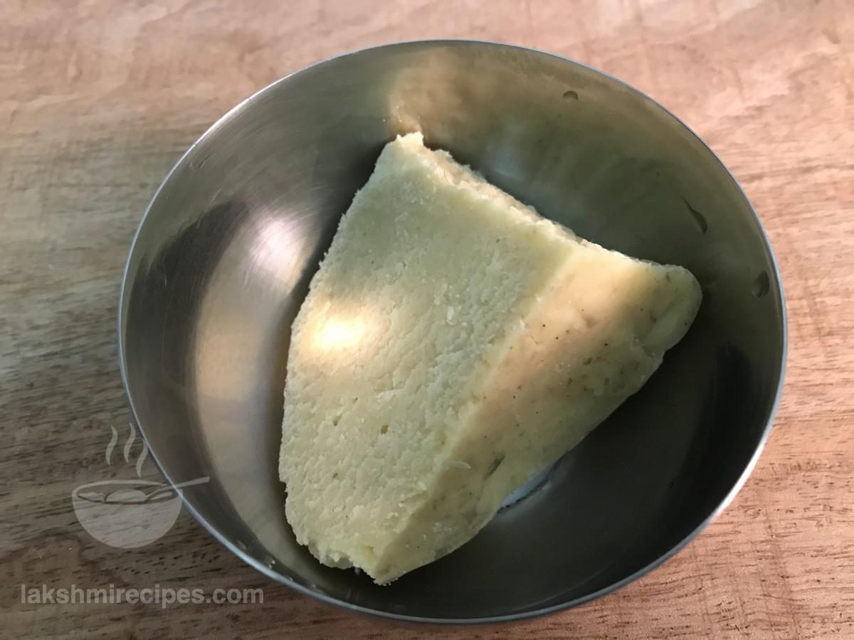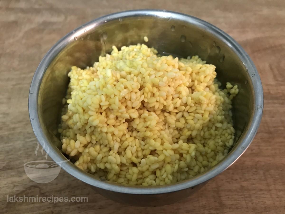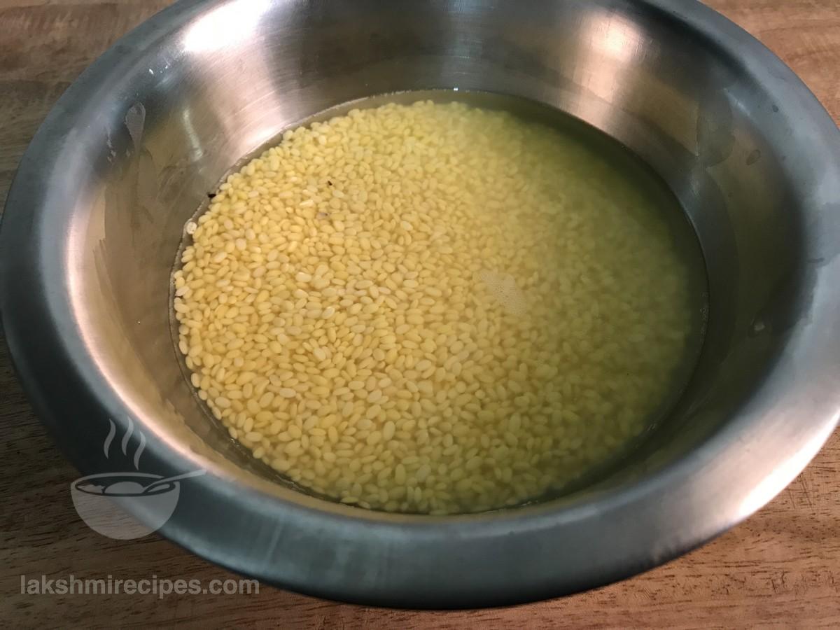 - Splitted and Dehusked Green Gram or Dhuli Moong Dal or धुलि मूंग दाल - 1 small cup, soaked in plain water for 4 hours