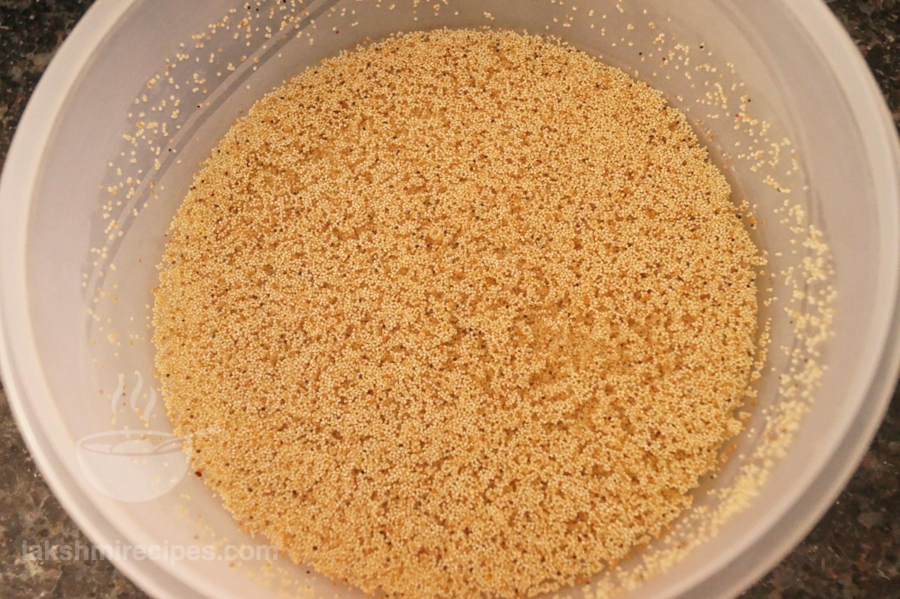 - Soak the poppy seeds (postadana) for 2 hours in water. Then grind them in amixer grinder to a form a granular paste.