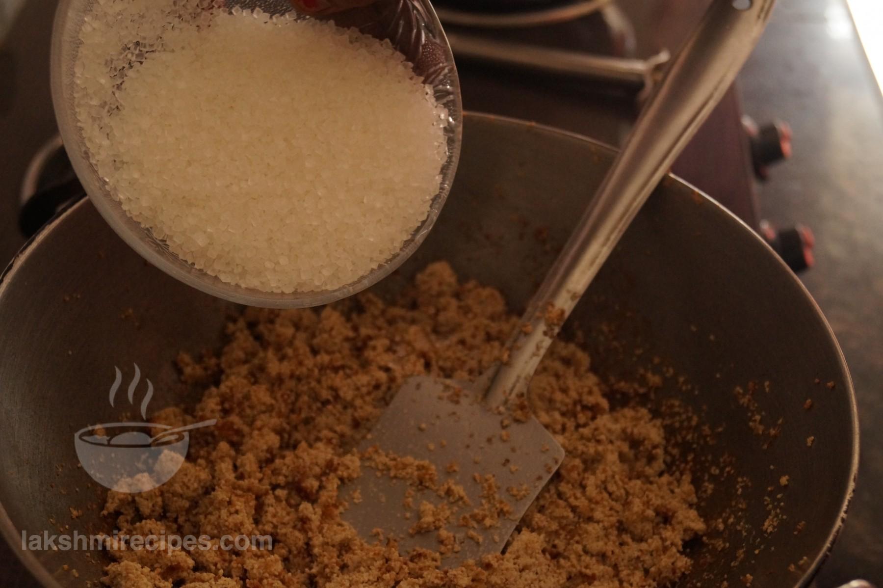 - अब इसमें चीनी डालें और अच्छी तरह मिलाएं। 3-4 मिनट तक लगातर चलाते हुए पकाएं।