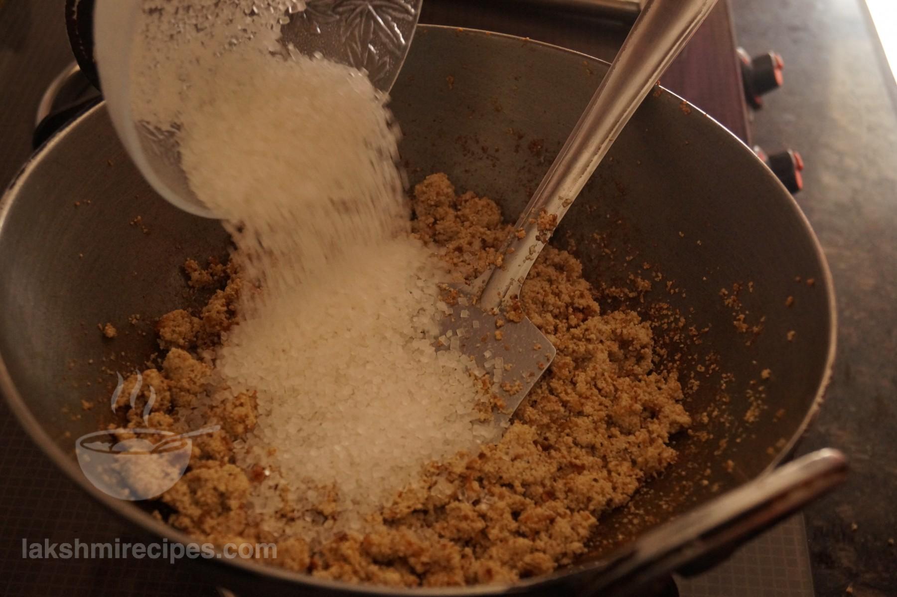 - Now add sugar to it and mix well. Stir for 3-4 minutes.